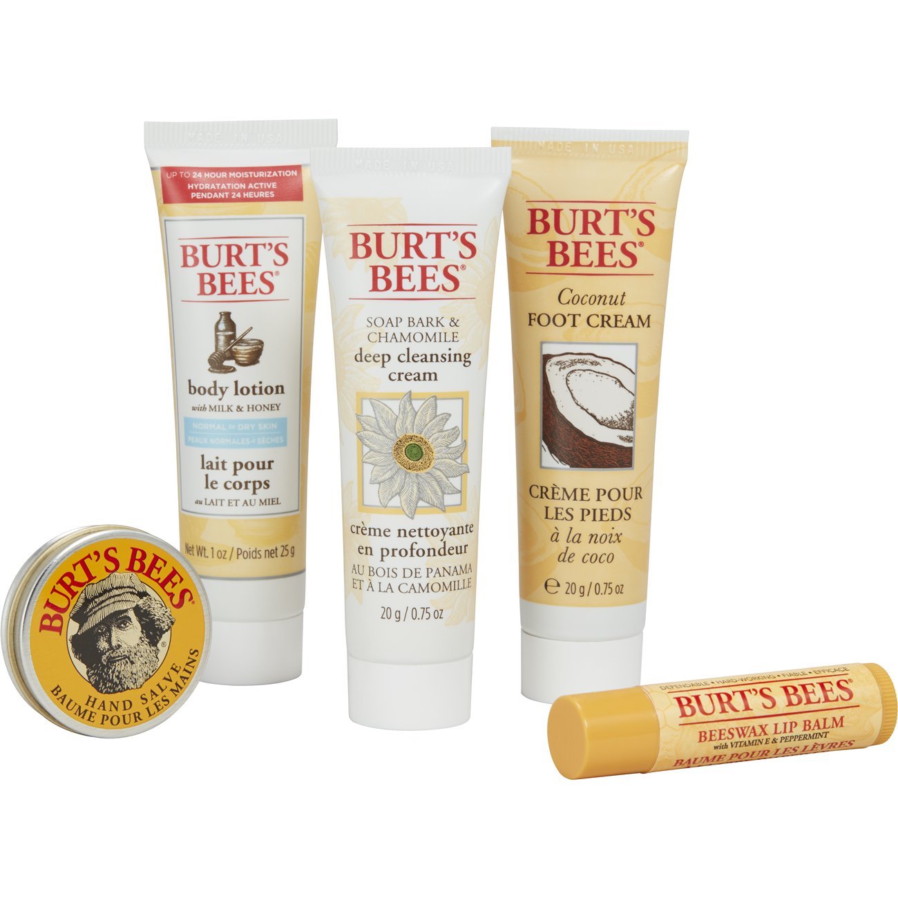 Gift set accommodates 5 trial sizes of Burt’s Bees merchandise