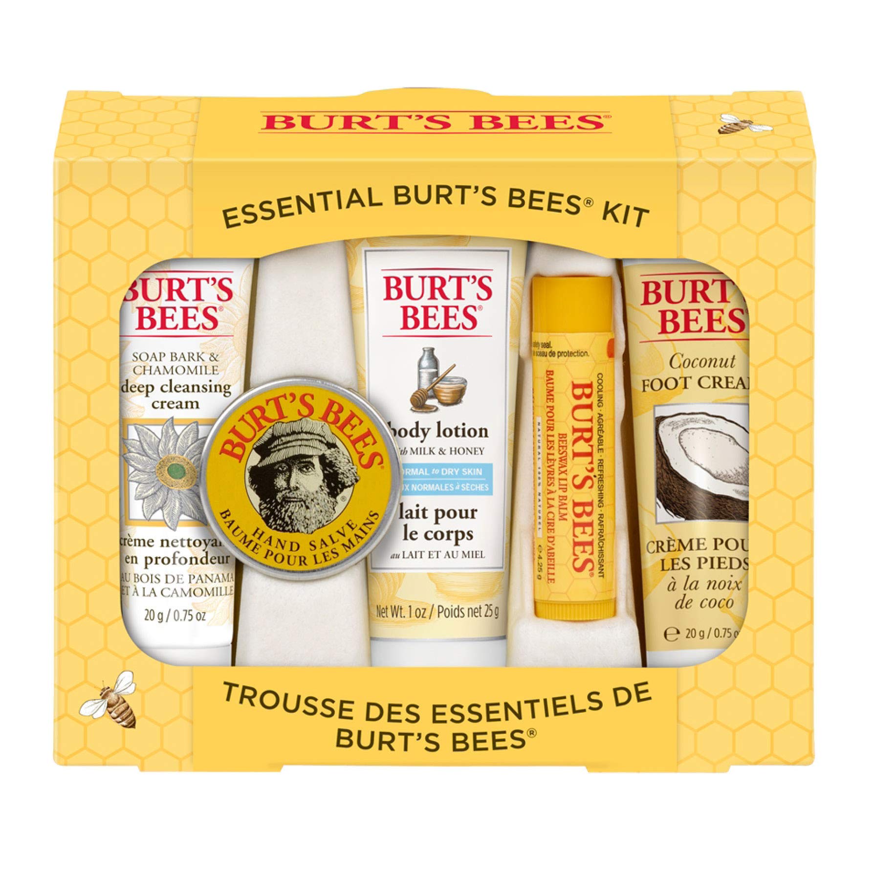 Burt’s Bees Essential Everyday Beauty Gift Set, Travel Size Natural Products with Deep Cleansing Cream, Hand Salve, Body Lotion, Foot Cream and Lip Balm