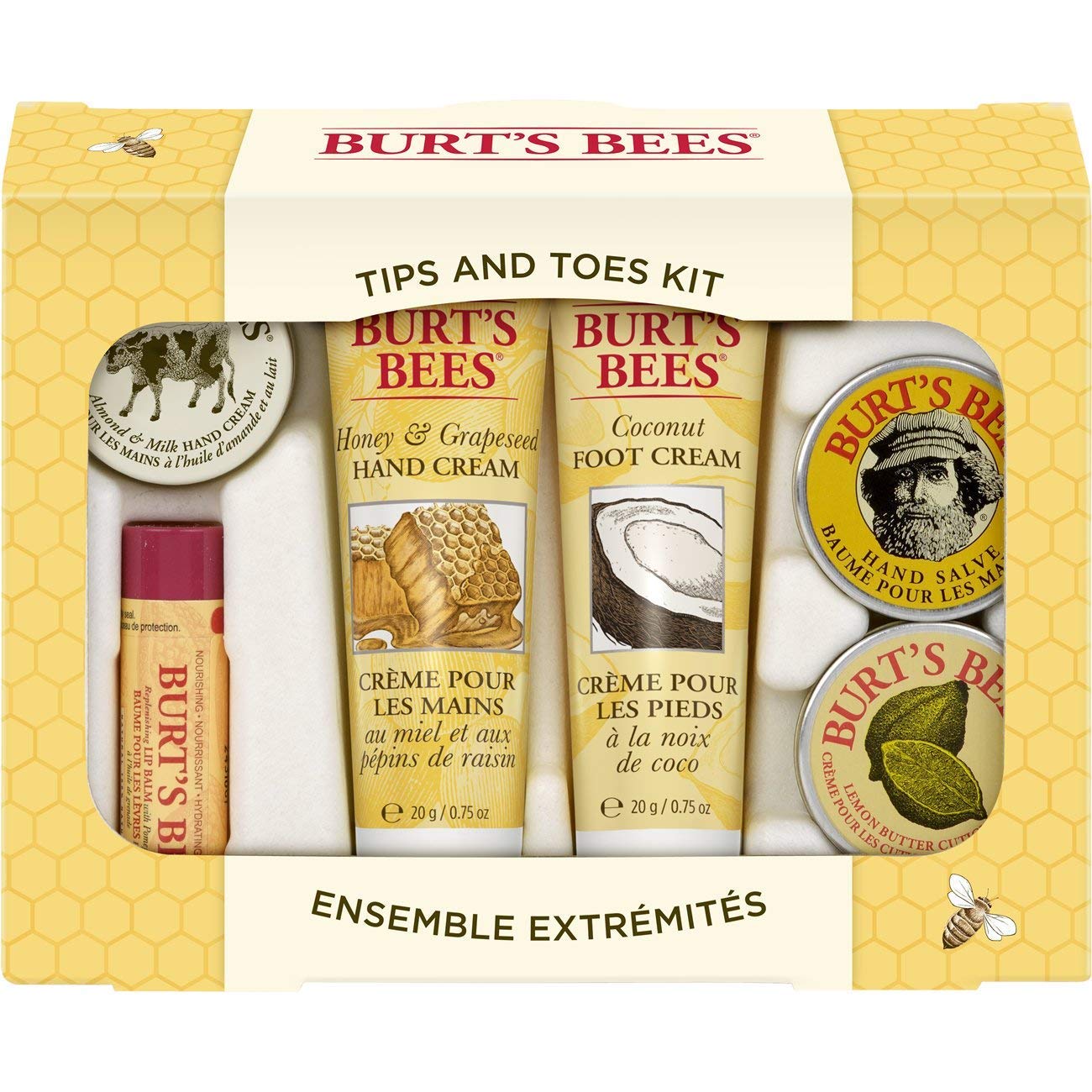Burt’s Bees Tips and Toes Kit Travel Size Natural Products in Gift Box with 2 Hand Creams, Foot Cream, Cuticle Cream, Hand Salve and Lip Balm