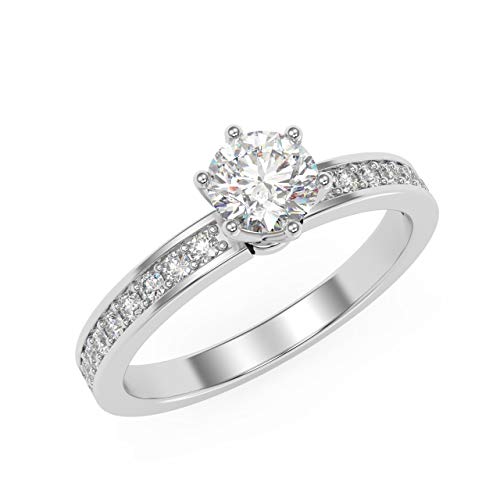 Special Offer .!! 100% Natural Certified 6 Claw 0.65 Carat F/SI Quality Round Brilliant Cut Diamond Engagement Ring UK Hallmarked 18k White Gold (Approx 3 Gram Gold)