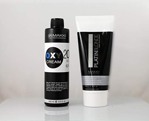 Hair Bleach Kit 30: Platin Blonde Hair Super Lightening Cream 250g + Makki Oxy 250ml in 30 VOL (9%)