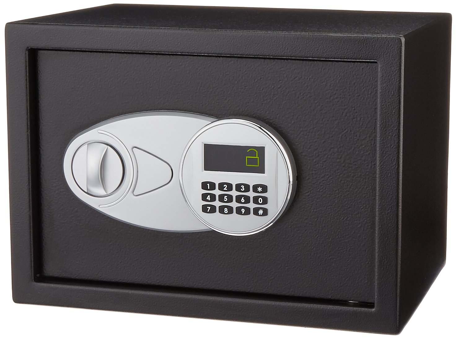 Reprogrammable digital access; uses AA batteries (not included); Four bolts included to mount safe to wall, floor, or shelf