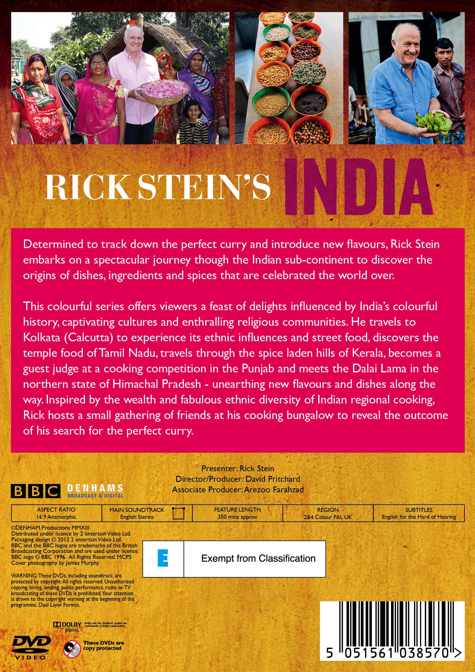 Actors Rick SteinDirector David PritchardCertificate Exempt from ClassificationYear 2013Screen 1.78:1 AnamorphicLanguages English – Dolby Digital (2.0) StereoSubtitles English for the hearing impairedClosed Captions YesDuration 5 hours and 50 minutes (approx)