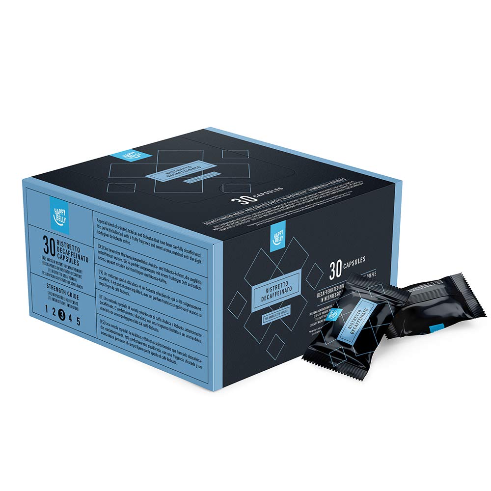 Ristretto decaffeinato capsules. Pack contains 30 servings. Made in Italy