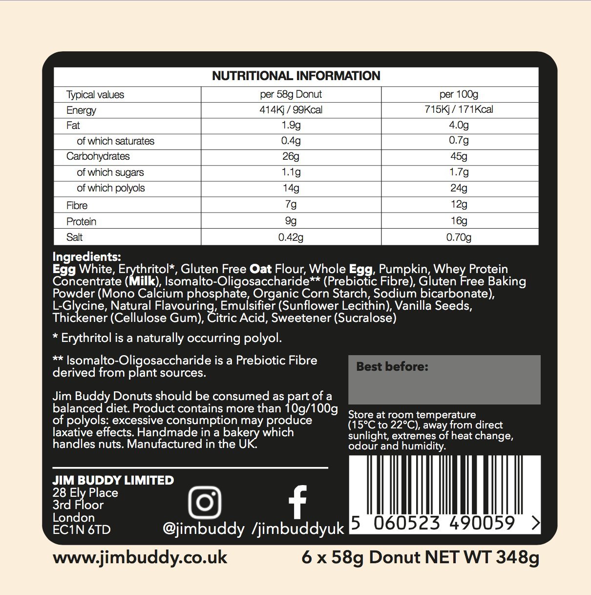 Jim Buddy’s High Protein, 99 Calorie Donuts – Pack of 6 (Vanilla Bean)