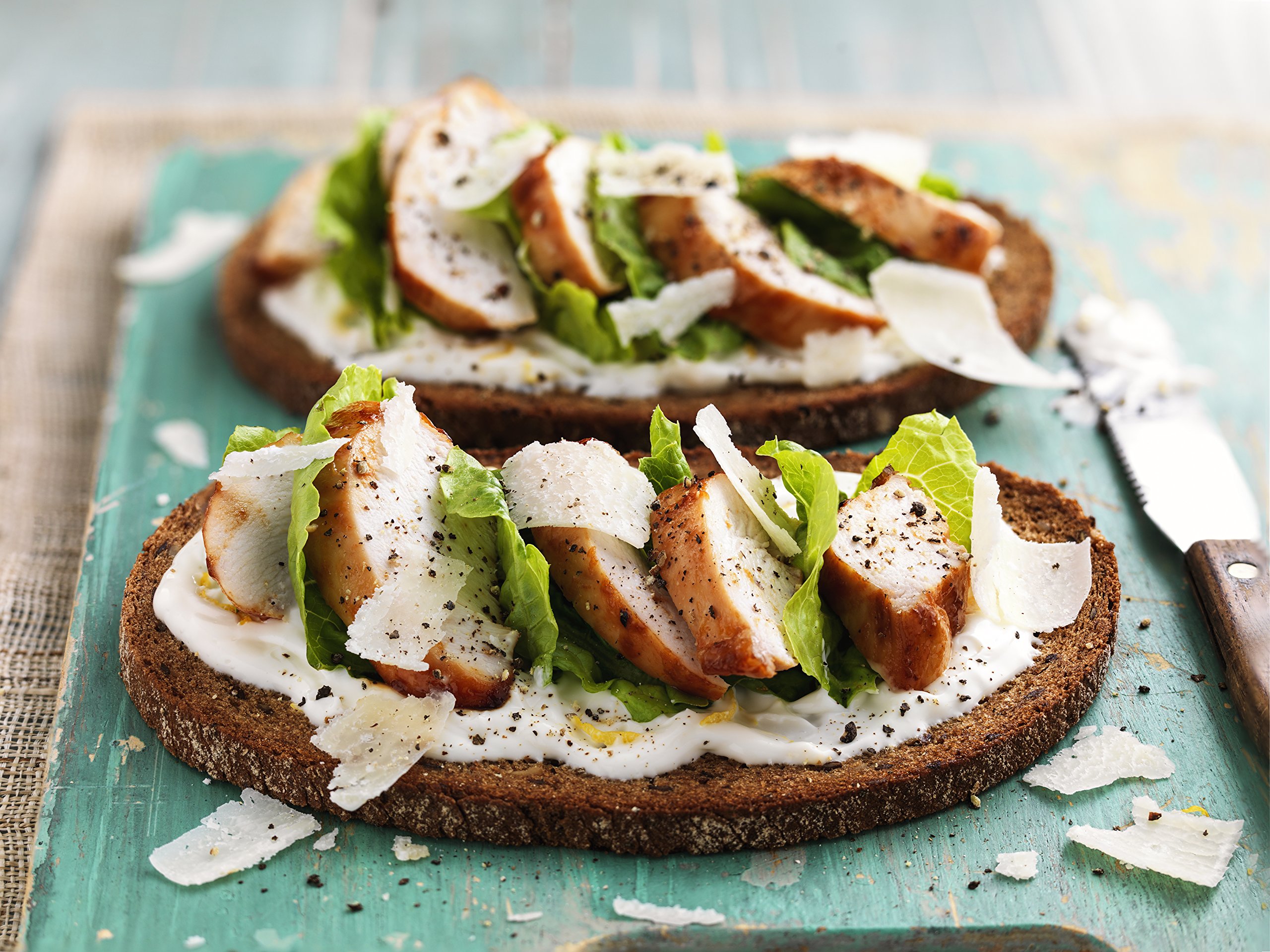 For an excellent lunch thought, take a look at as an open sandwich with rooster, gem lettuce and lemon mayonnaise, dressed with parmesan