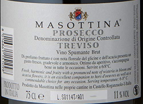 Masottina’ s Prosecco Brut has a fruity hit of unpolluted citrus with floral notes, which mix to create a mild, pleasant flavour.