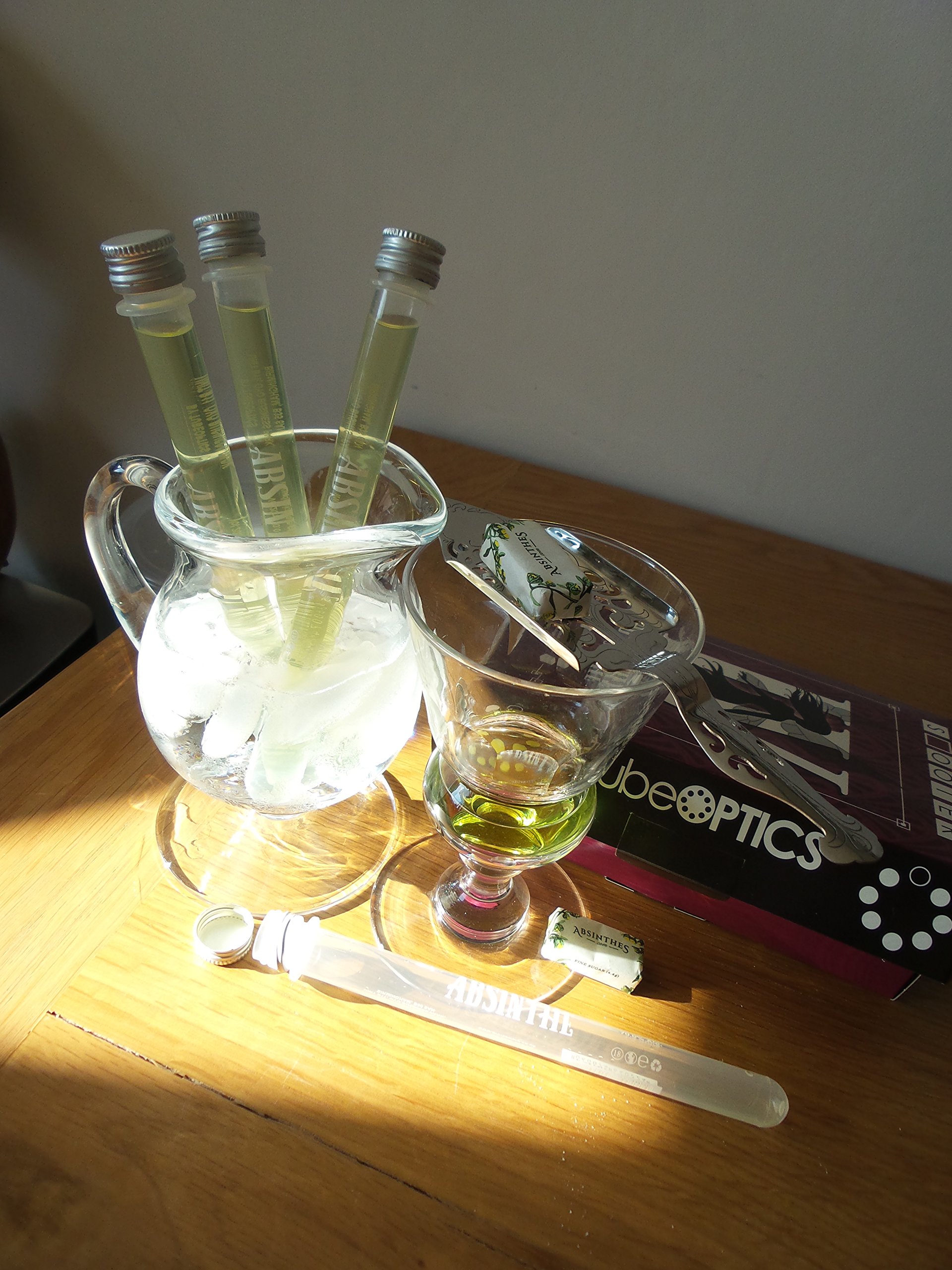 This whole “Green Fairy” box set has the whole lot you wish to have. It includes 4 Absinthe 70% ABV miniatures. 4 Absinthe Sugars. 1 Ornate Absinthe spoon plus instructions. Just add ice cold water to revel in! Search ‘Tubeoptics’ on Amazon, to look what other optics now we have to be had. Please Drink Responsibly