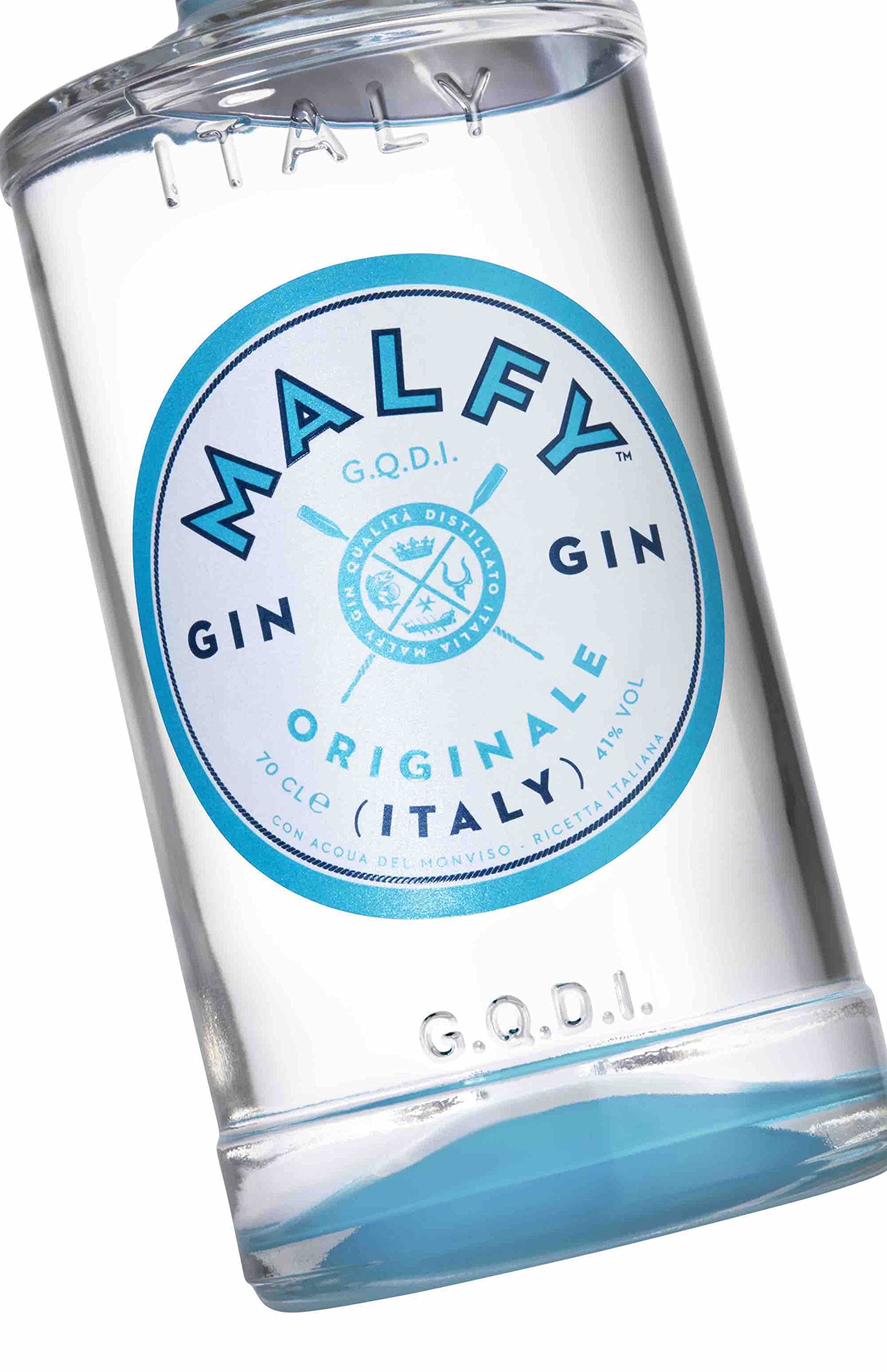 Malfy GQDI (which stands for Gin di Qualita Distillato in Italia) is packaged in a flint glass bottle overlaid with a blue label representative of the crystal transparent water of the snow-capped peak of Monviso.