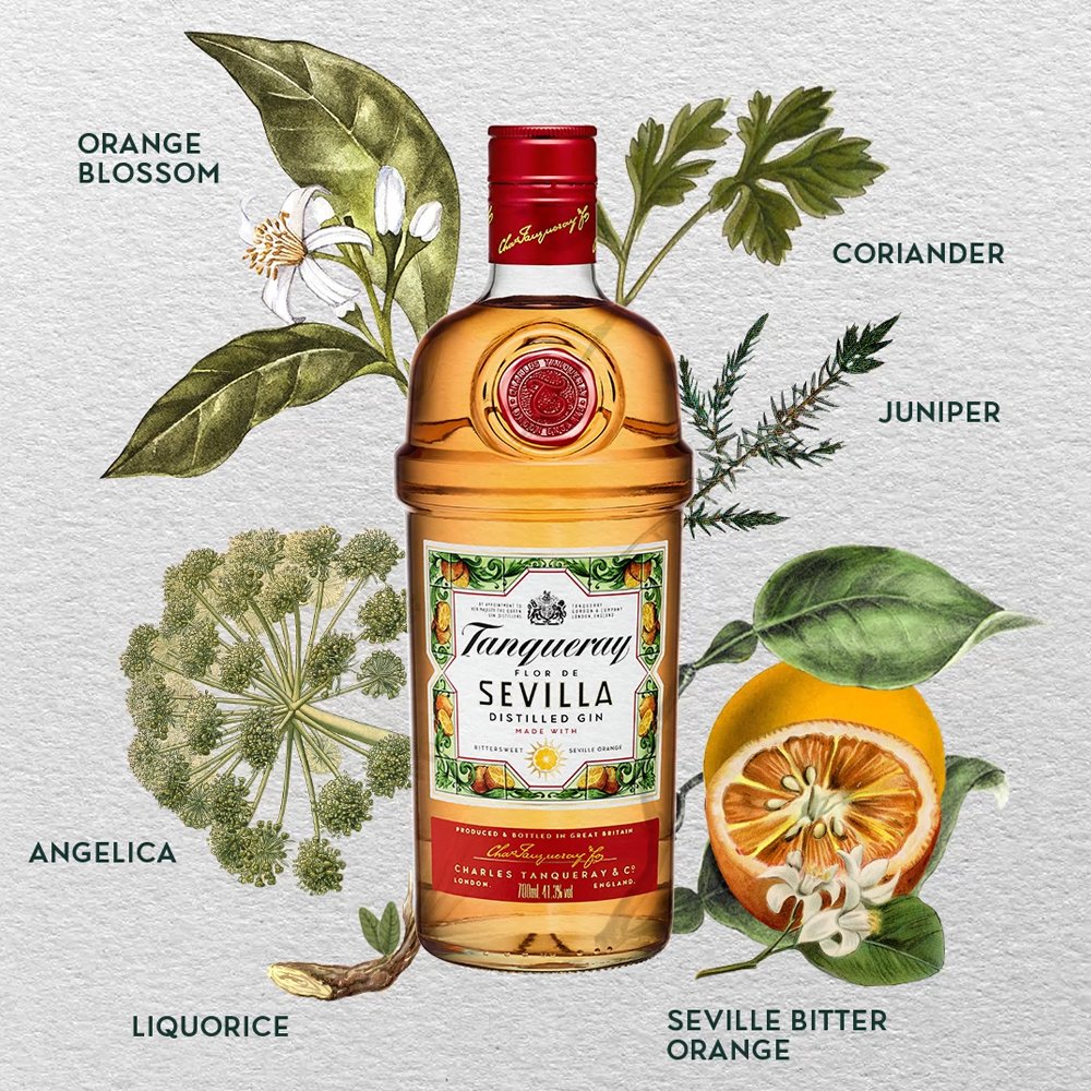 Tanqueray Flor de Sevilla is made with bittersweet Seville Oranges to deliver a fruitful and zesty taste, balanced with the 4 botanicals of our classic London Dry gin.