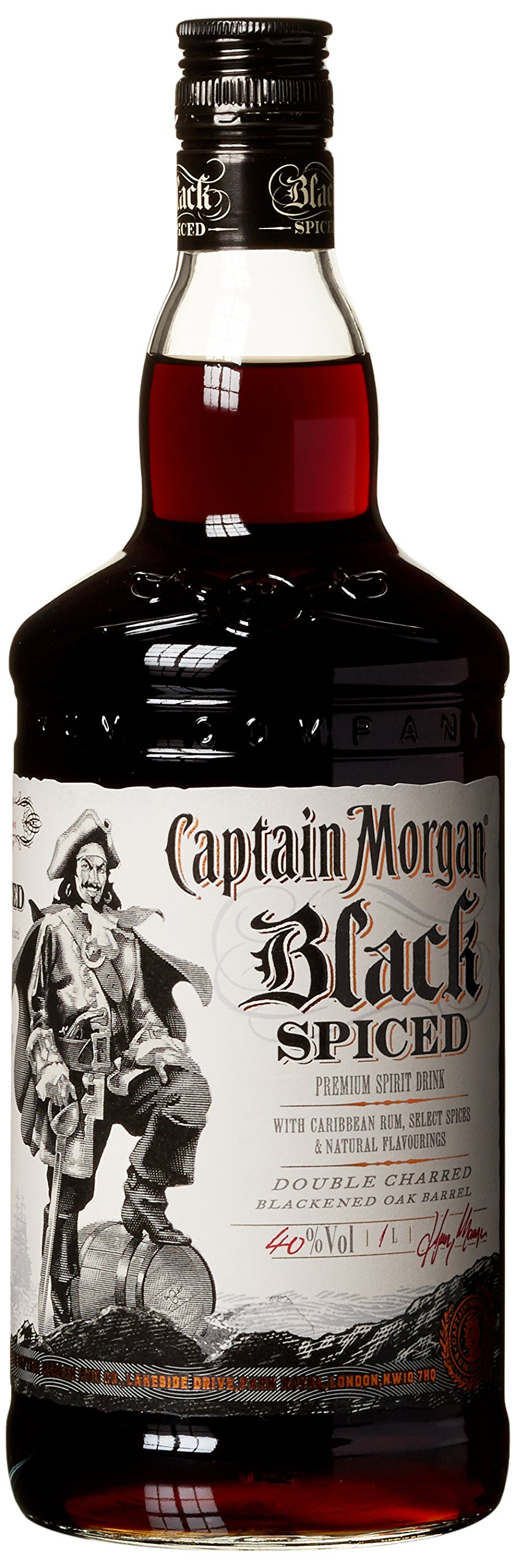 “100cl / 40.zero% – A one litre bottlng of darker spiced rum from Captain Morgan made with blackstrap Caribbean rum and completed in double charred okaycasks. Very best with cola