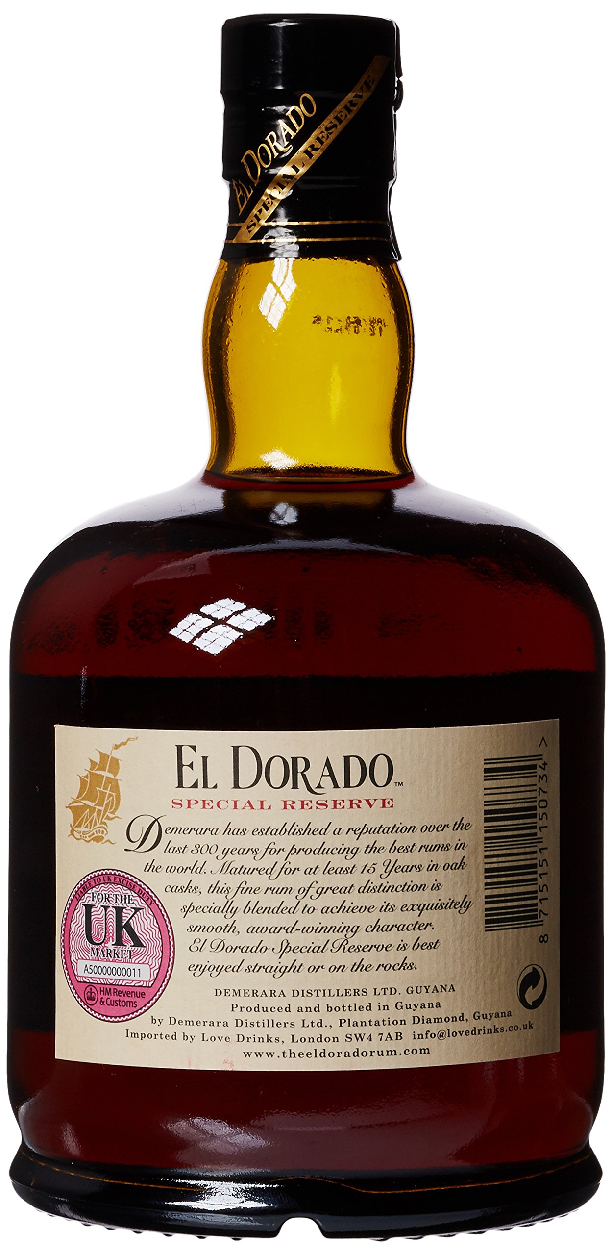 Long acknowledged as the Caribbean’s premier rum, often winning medals during the last decade at the Caribbean Rum Taste Test held annually in Barbados, the El Dorado 15 years old Special Reserve Rum won in 2001, the Platinum Award and used to be voted the Connoisseurs’ Choice at the Chicago Beverage Tasting Institute. And, in 2002, the International Rum Festival of Canada, awarded this superb rum, the gold m