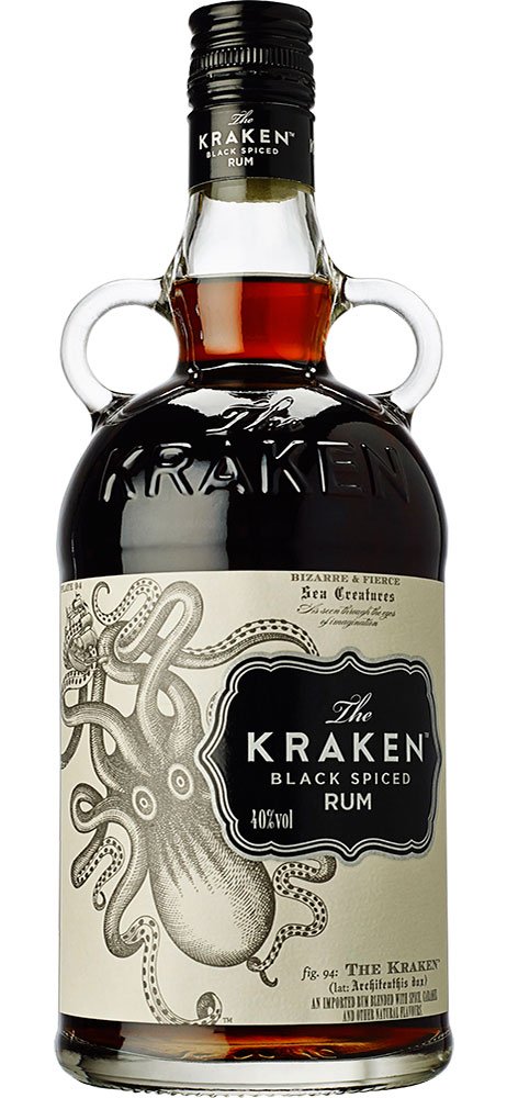 Kraken Rum is mixed with 14 spices & aged in oak casks for at least 24 months.