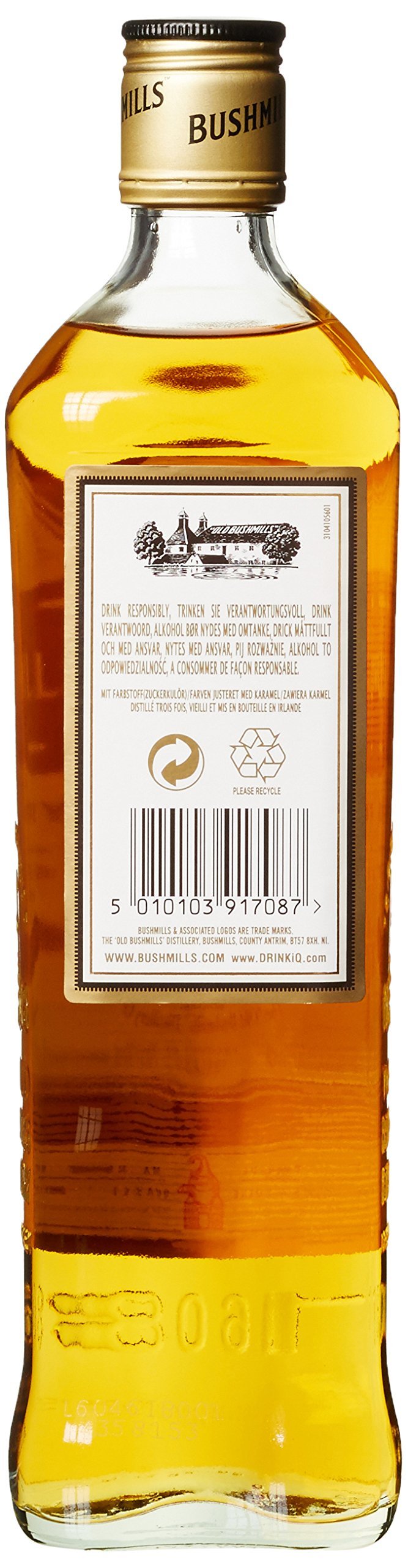 Bushmills Irish whiskey is the unique and absolute best known whisky from the Old Bushmills Distillery, the oldest licensed whisky distillery on this planet. Its is a blend of single malt and single grain whiskey.