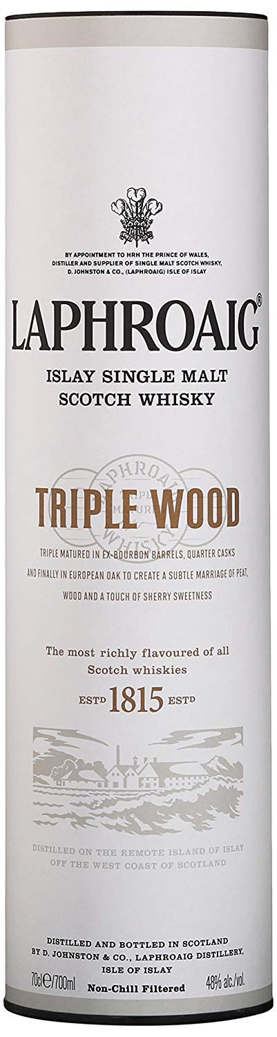 Laphroaig Triple Wood is a new release from this popular Islay distillery.This Laphroaig single malt has been matured in three sorts of cask. The primary is in American oak, ex-bourbon