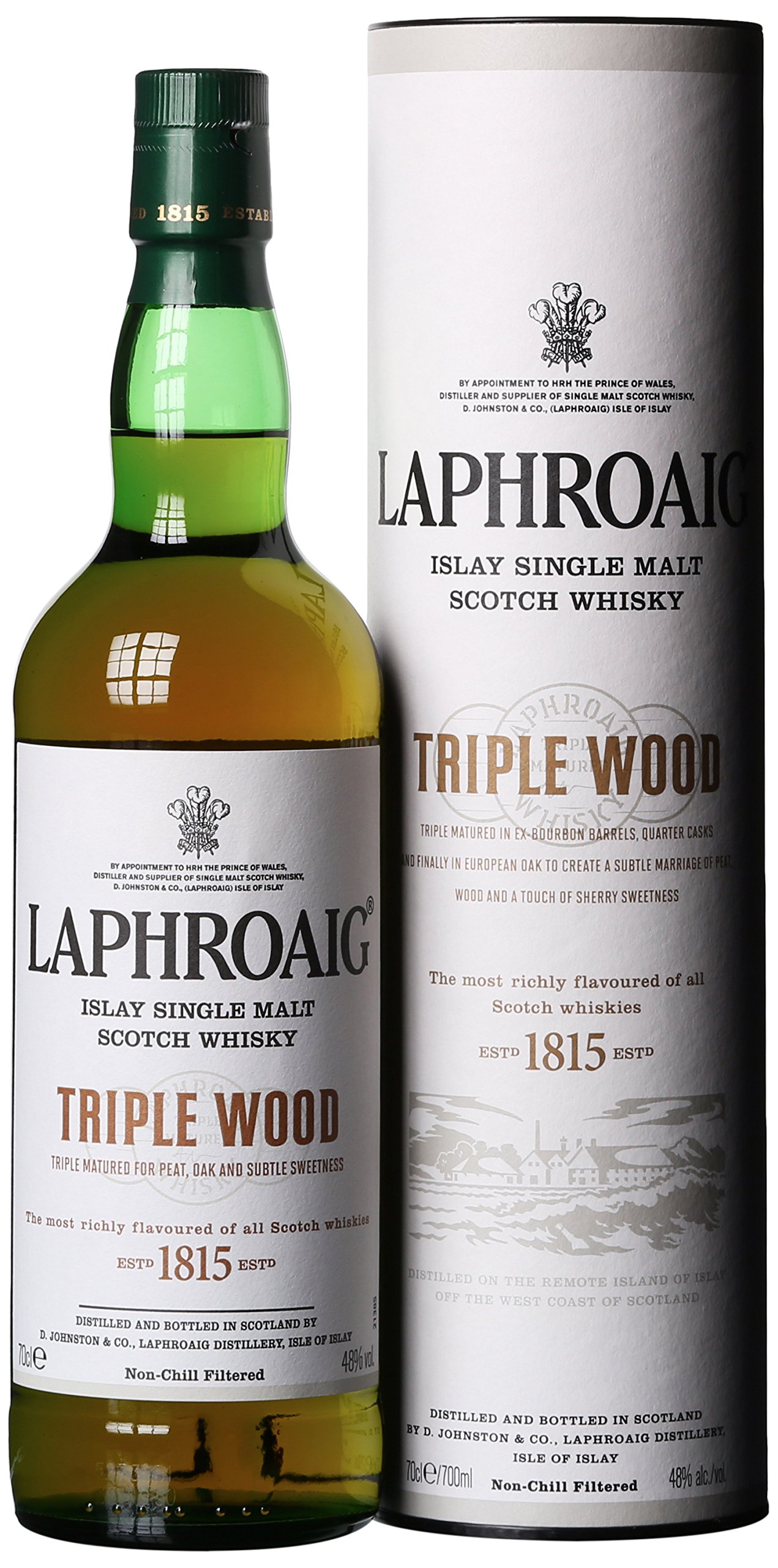 Laphroaig Triple Wood is a new release from this popular Islay distillery.This Laphroaig single malt has been matured in three sorts of cask. The primary is in American oak, ex-bourbon barrels. We then choose essentially the most suitable of these barrels, containing a range of different aged spirit and transfer into small 19th century style Quarter Casks for a second maturation. The final maturation is in specially selected, large European oak, Oloroso sherry casks. This triple cask maturation leads to what we predict is the very best marriage of peat, oak and sherry notes, retaining the normal Laphroaig peat smoke aroma, balanced by the delicate sherry sweetness and hints of sea salt