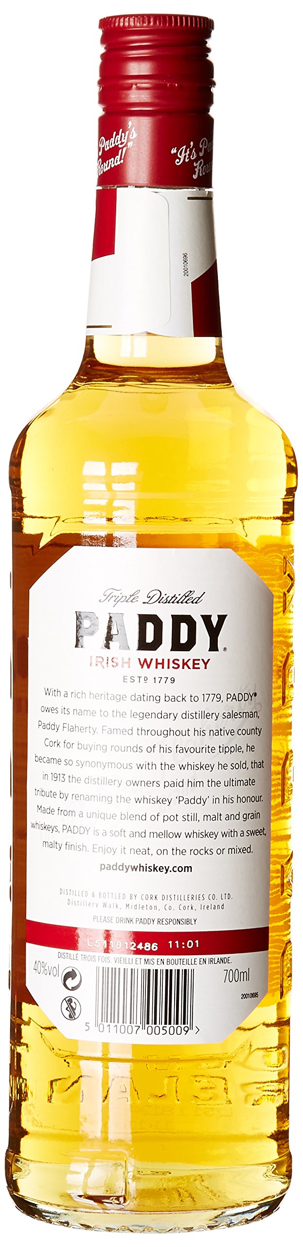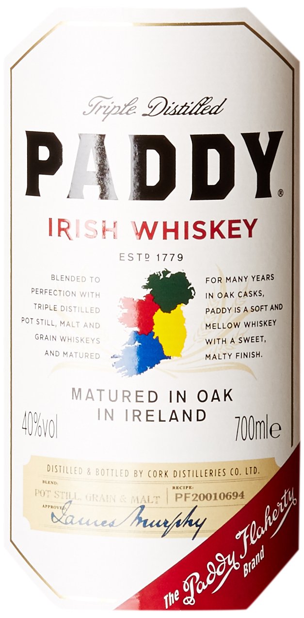 Paddy Old Irish Whiskey has been produced since 1779 by the Cork Distillers Company, Paddy owes its name to a widely recognized company salesman, Paddy Flaherty, who unfold the reputation of this remarkable whiskey way past the coasts of Ireland.