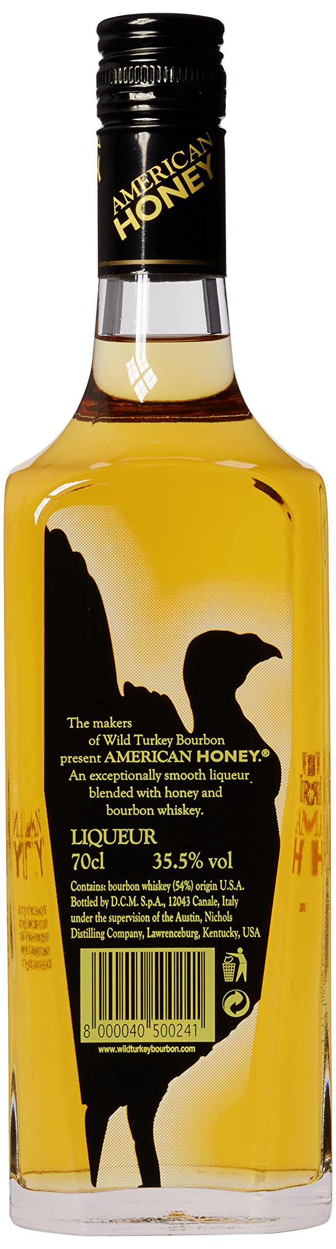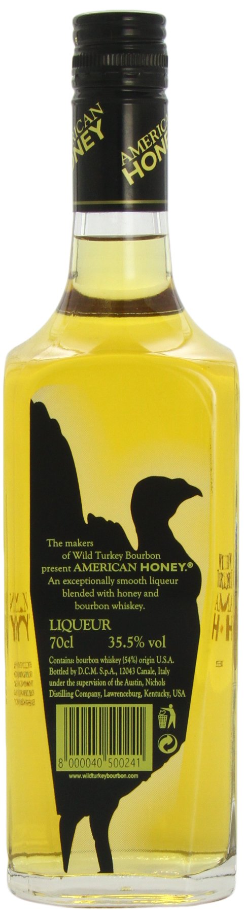 Wild Turkey American Honey is an extremely easy liqueur blended with pure honey and real Wild Turkey Bourbon Whiskey, highest served chilled straight from the freezer, over the rocks, it’s the sweeter, smoother facet of Wild Turkey.