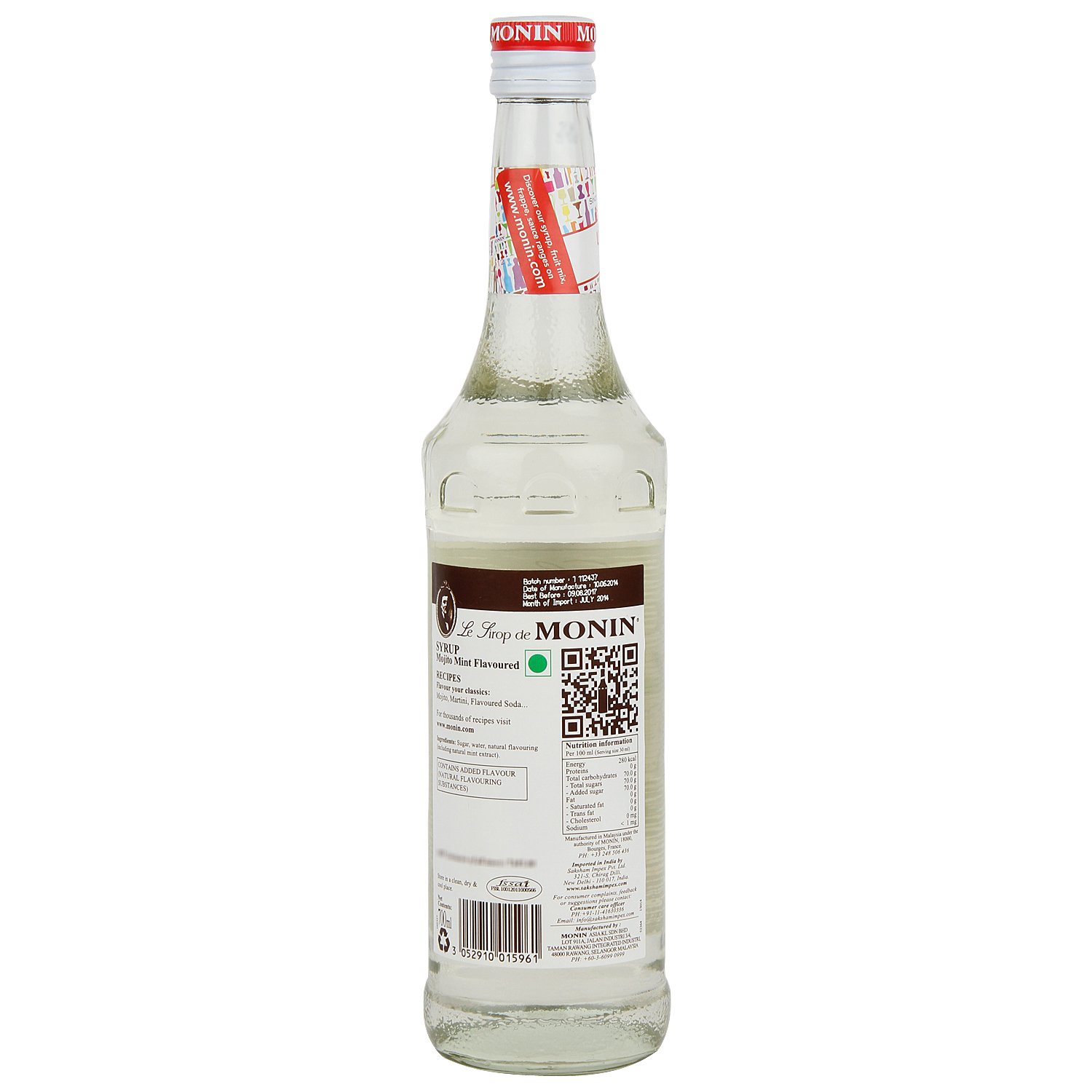 Colour: Transparent.Taste: Spearmint smell, perfectly balanced taste of cane sugar and spearmint.The famous Mojito cocktail was once born within the sultry bars of pre-revolutionary Havana. Skilled bartenders referred to as upon the local abundance of wild mint yerbabuena, cane sugar, lime and rum to create a refreshing cocktail sensation that flavoured the sensual Cuban nightlife. Yet the time consuming preparation of mojitos involving making simple syrup and thoroughly muddling lime and mint leaves, in addition to its hard to find ingredients didn’t trip well to the international bar scene. With Monin Mojito Mint, making mojitos is now easy. Just combine with rum, club soda and a squeeze of lime! The Mojito is now a standout favorite among American bars and restaurants patrons. Moreover, Monin Mojito Mint is a refreshing mint and lime flavour that can be utilized beyond the bar in countless non-alcoholic applications.Best possible Served: Coffees, Chocolates, Teas, Fruit punches, Smoothies, Sodas, Lemonades.For Best possible results keep refrigerated and use within 4 weeks.