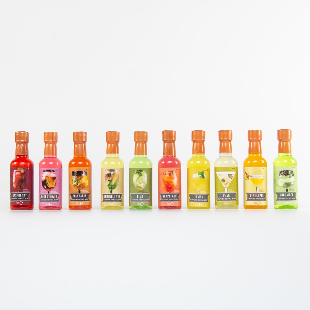 10 DELICIOUS FLAVOURS: Sample ten refreshing cocktail flavours, including Lime, Elderflower, Mandarin, Rose Flower, Raspberry, and plenty of more!