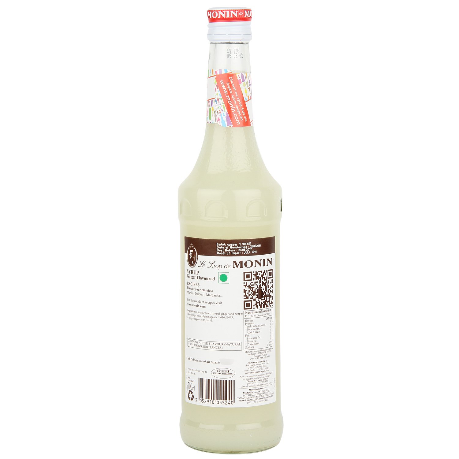 “70cl / 0.0% – Fact Hunt: Do you know the word Ginger comes from the Sanskrit word “”horn-formed””. This warming, spicy Syrup from Monin is a smart addition to winter
