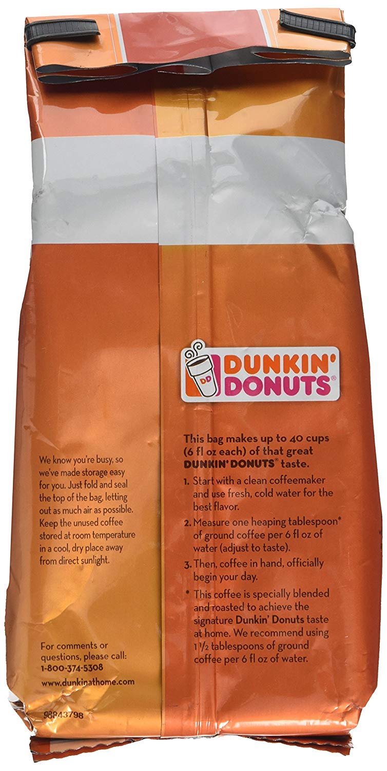 Recent roasted one hundred% Arabica ground coffee; American USA imported Dunkin Donuts