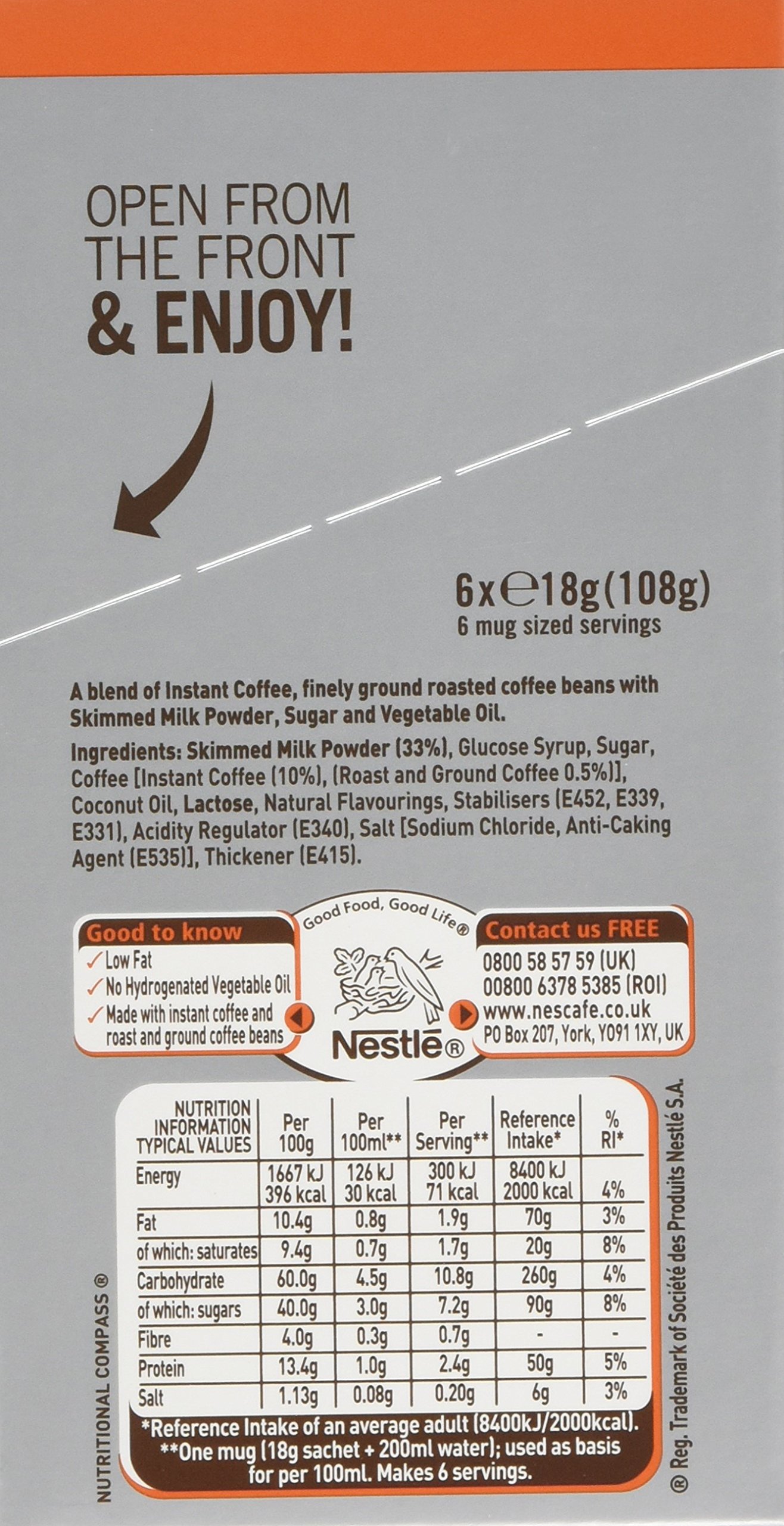 NESCAFÉ Azera Latte Coffee 6 sachets x 18 g – Pack of 6, Total 36 sachets
