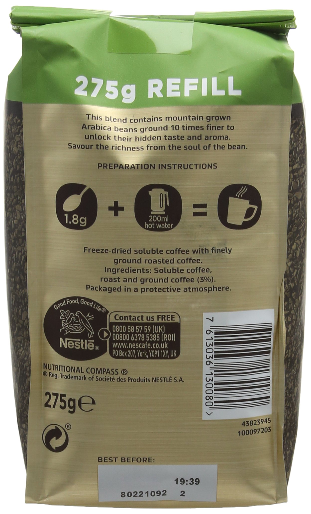NESCAFÉ GOLD BLEND Instant Coffee Refill, 275 g (Pack of 6)