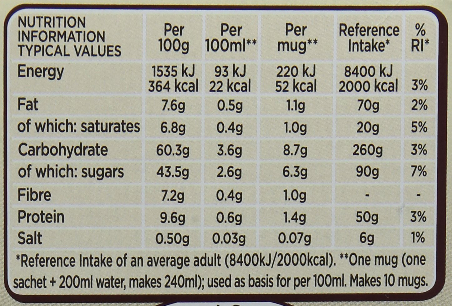 Make coffee keep-taste drinks from eight cappuccino sachets in moments