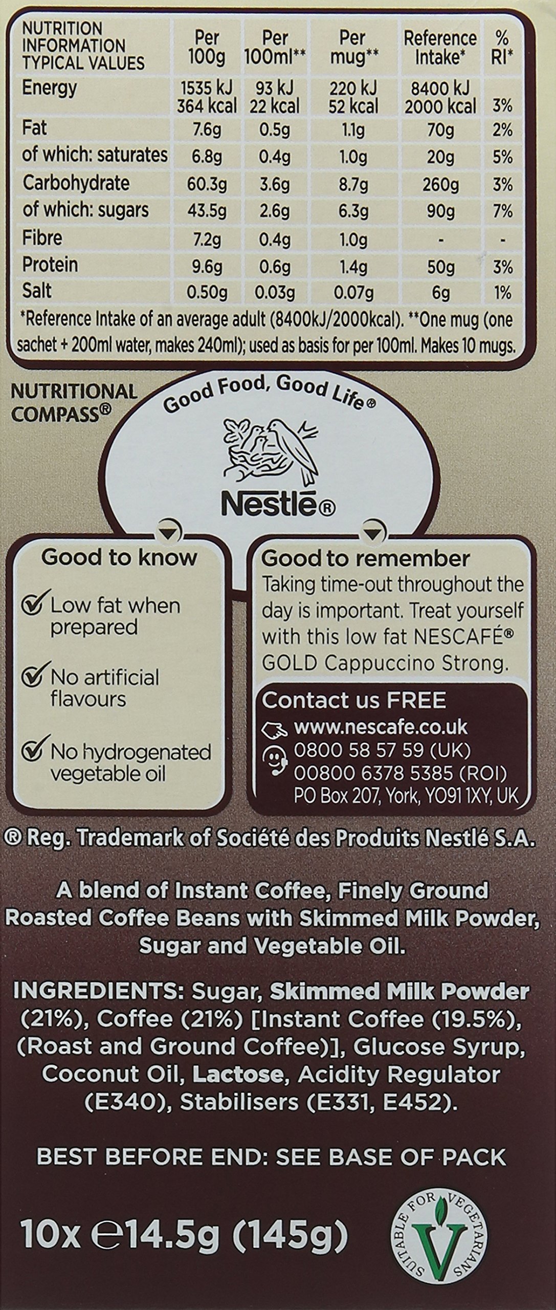 NESCAFÉ GOLD Cappuccino Strong Coffee, 8 Sachets, (Pack of 6, Total 48 Sachets)