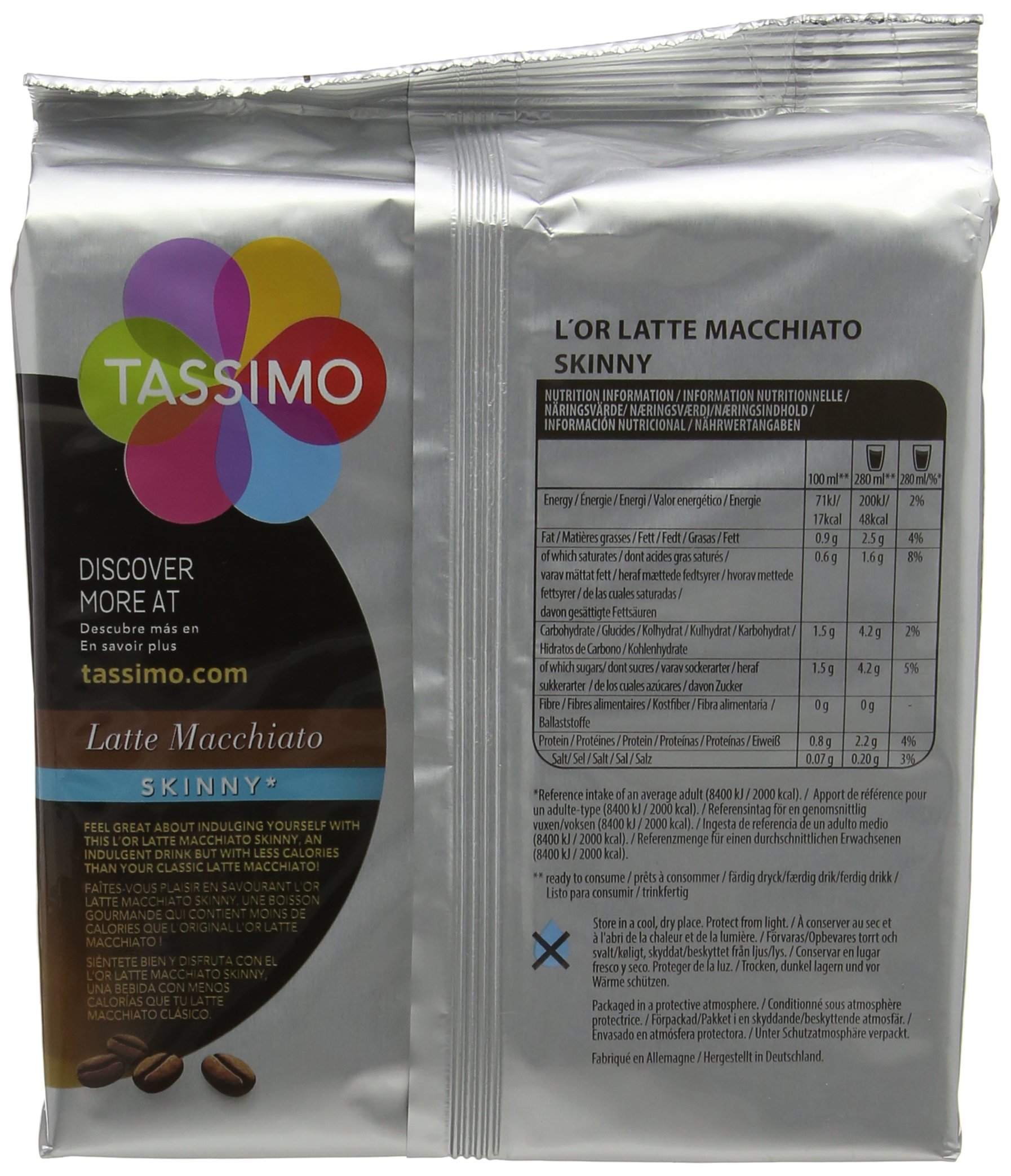 Really feel nice about indulging your self with this Tassimo L’OR Latte Macchiato Thin Coffee. An indulgent drink with less calories than your classic Latte Macchiato!