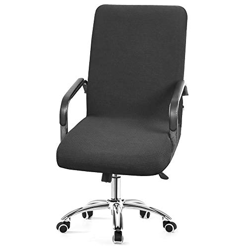 Windyeu Computer Office Chair Covers Universal Desk seat Cover Elastic Fabric Stretch Thick Comfortable Padded Removable Rotating Chair Slipcovers for Office Computer Chair (No Chairs) (Dark gray, S)