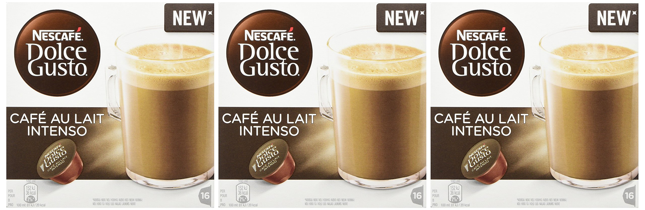 NESCAFÉ DOLCE GUSTO Café au Lait Intenso Coffee Pods, 16 Capsules (Pack of 3 – Total 48 Capsules, 48 Servings)