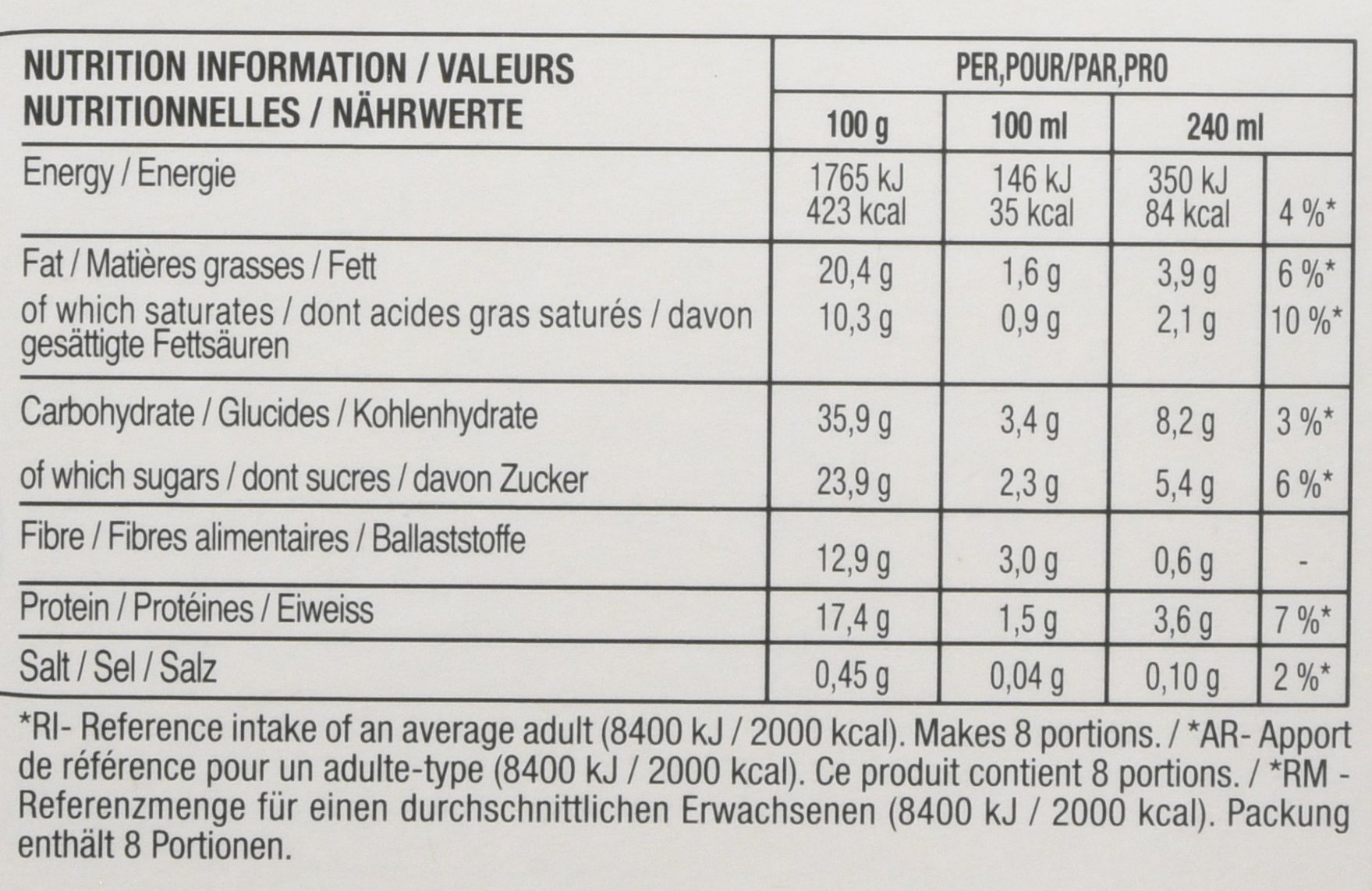 16 capsules per pack, eight servings