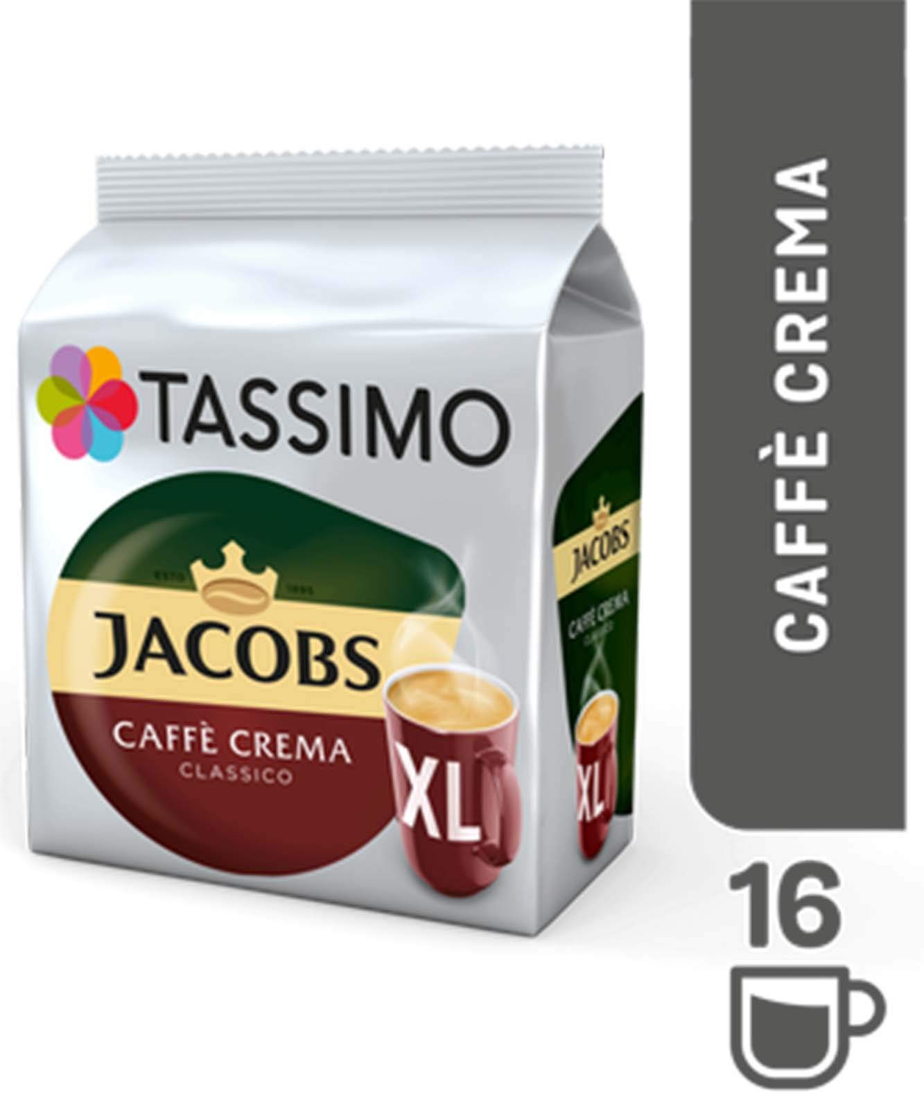 With the sensible XL cup size you’ll savor the delicious taste of Jacobs Caffe Crema even longer. Enjoy the wealthy taste and velvety golden Crema of Jacobs Caffe Crema classico XL.