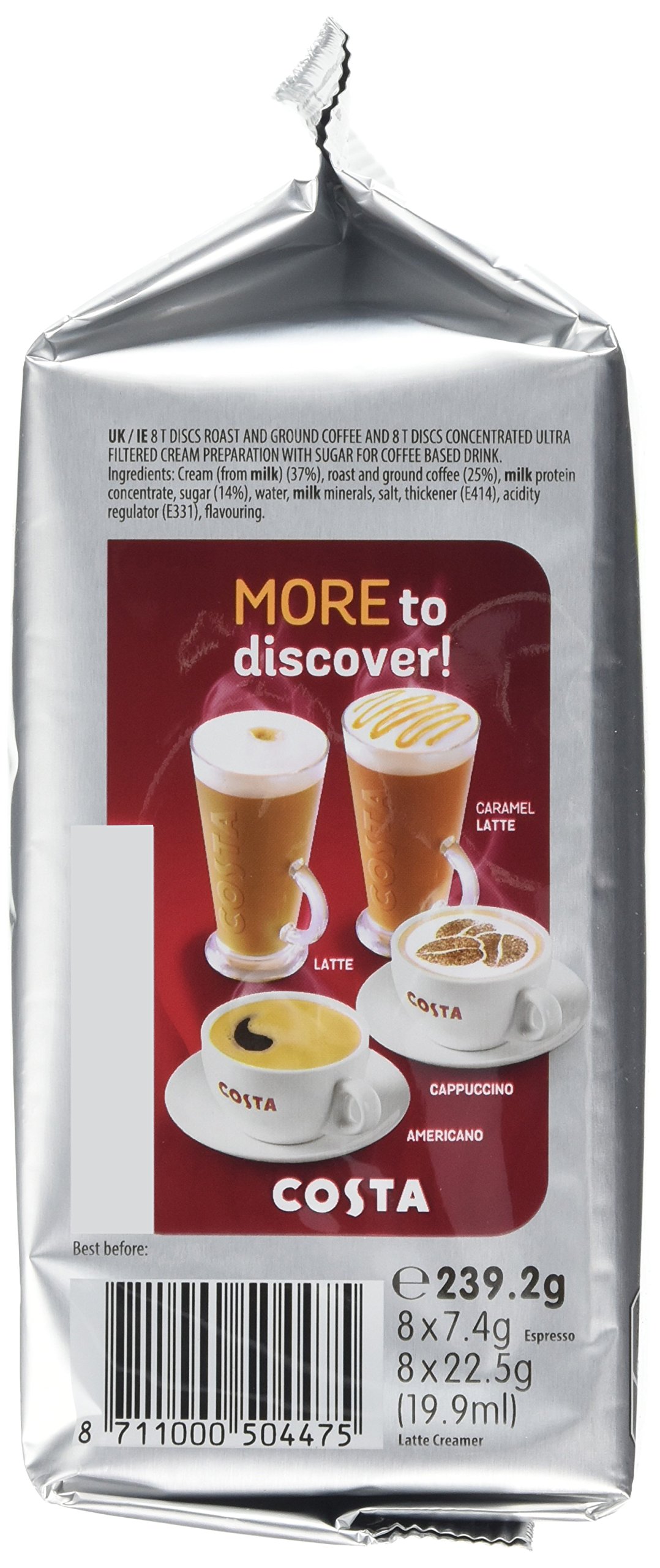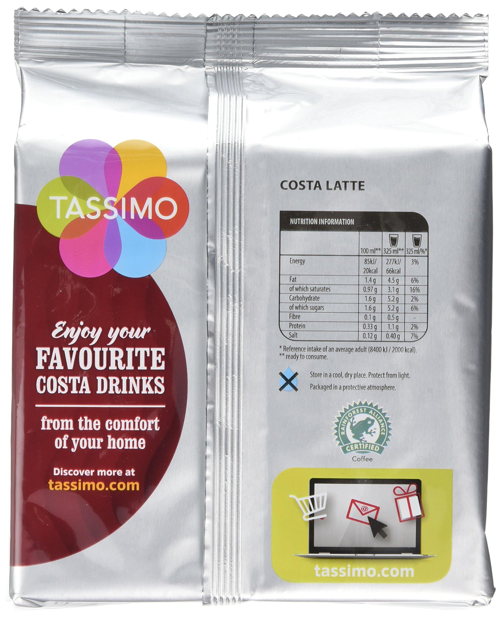 Tassimo Costa Latte Coffee Pods (16 pods, 8 servings)