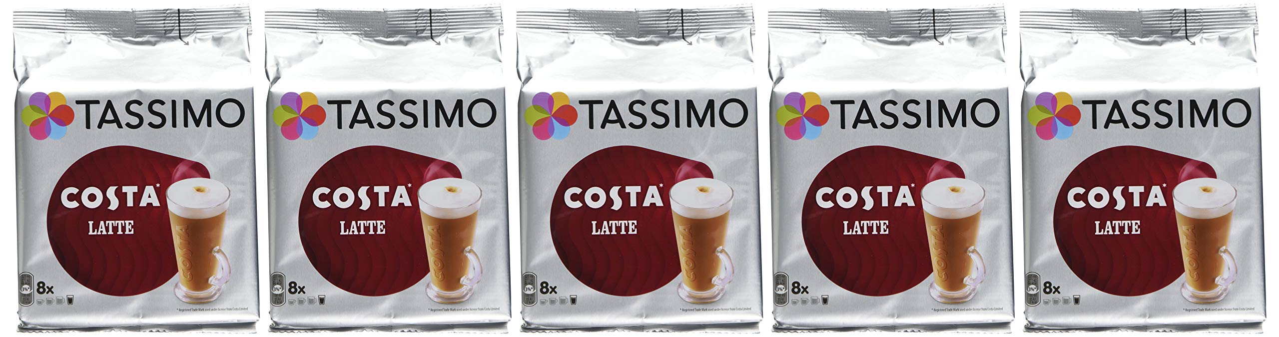 Tassimo Costa Latte Coffee Pods (Pack of 5, Total 80 pods, 40 servings)