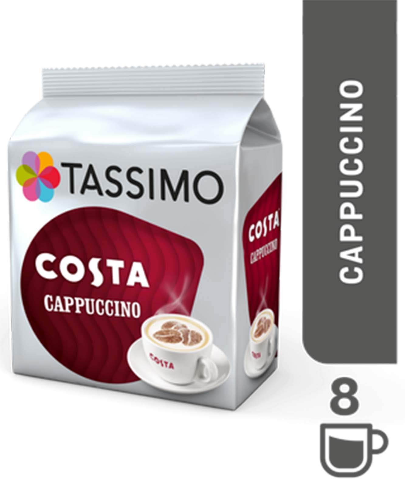 A specially crafted blend of coffee beans roasted to perfection to create the similar authentic taste of a Costa espresso based Cappuccino, topped with velvety frothy milk. Insert a Tassimo T DISC pod into the machine & enjoy.