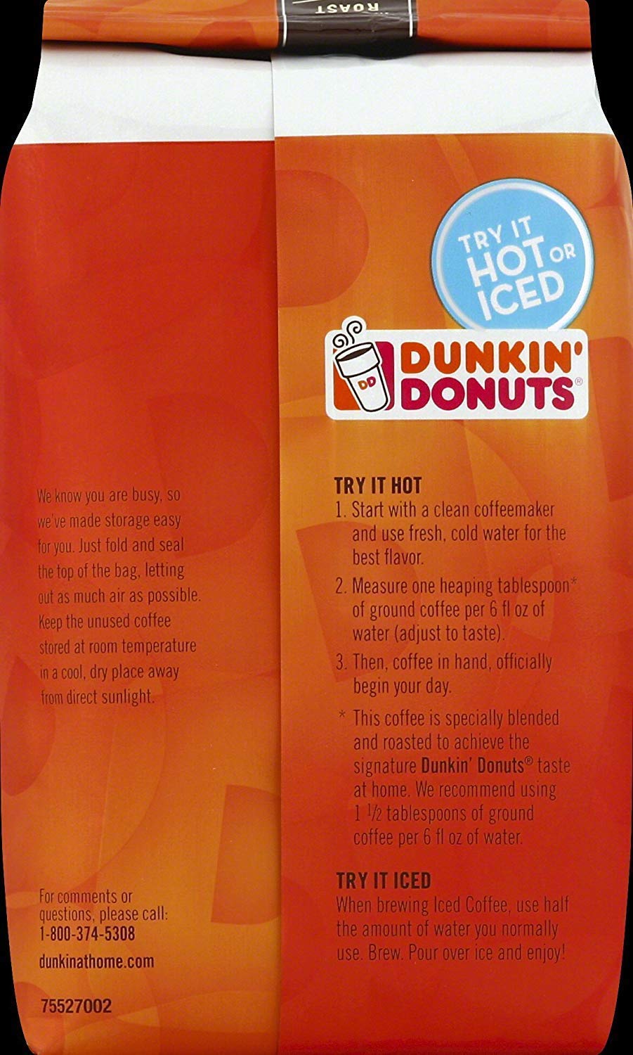 Contemporary roasted one hundred% Arabica ground coffee; American USA imported Dunkin Donuts