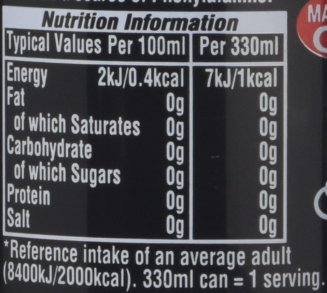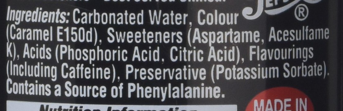 Pepsi Max Cans, Provided as a wholesale case of 24 x 330ml Cans. Ingredients Carbonated Water, Colour (Caramel E150d), Sweeteners (Aspartame, Acesulfame Okay), Acids (Phosphoric Acid, Citric Acid), Flavourings (together with Caffeine), Preservative (Potassium Sorbate)