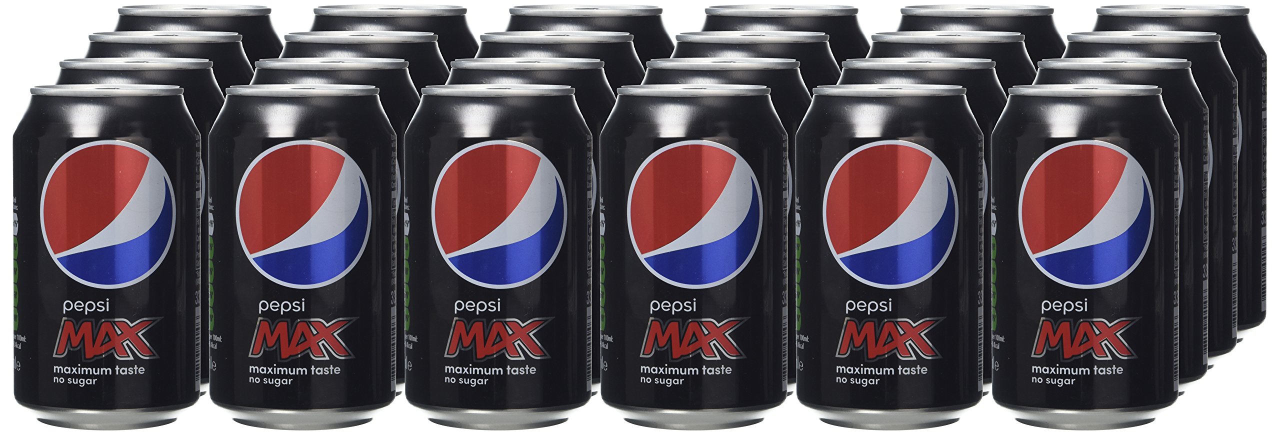 Pepsi Max Cans, Provided as a wholesale case of 24 x 330ml Cans. Ingredients Carbonated Water, Colour (Caramel E150d), Sweeteners (Aspartame, Acesulfame Okay), Acids (Phosphoric Acid, Citric Acid), Flavourings (together