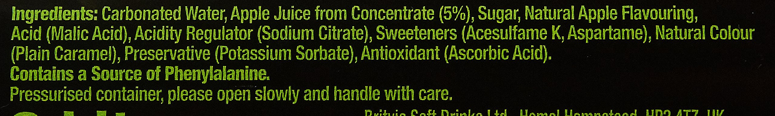 Apple cushy drink with sugars and sweeteners