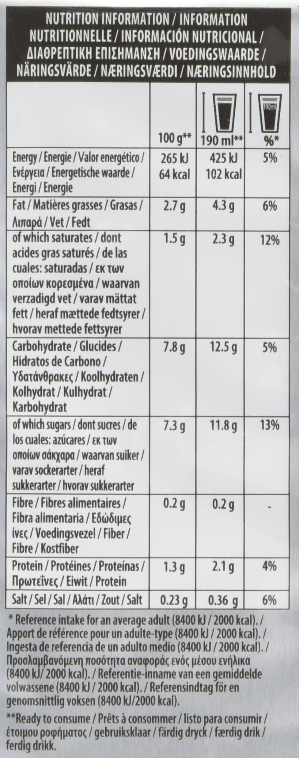 190 ml according to serving