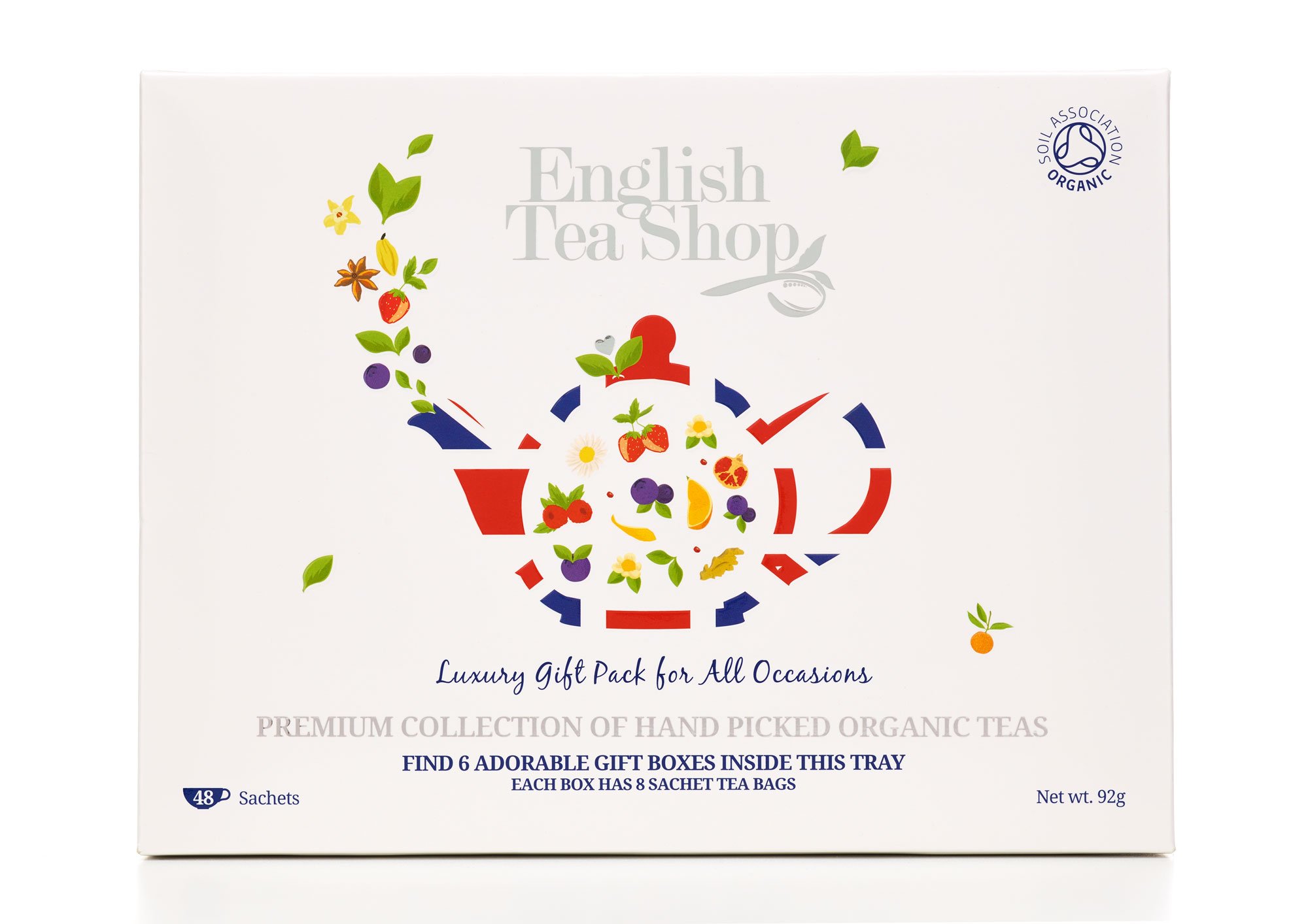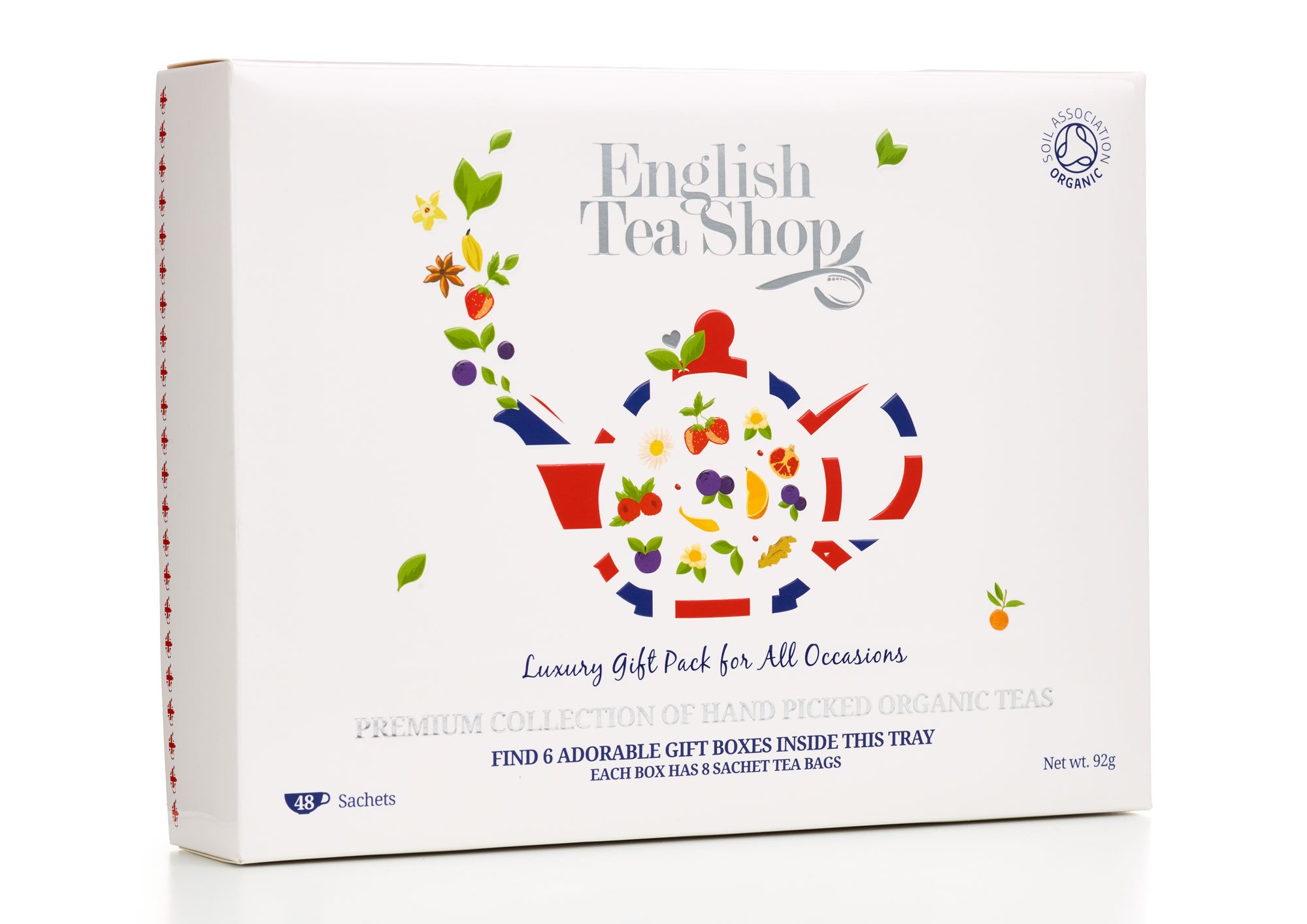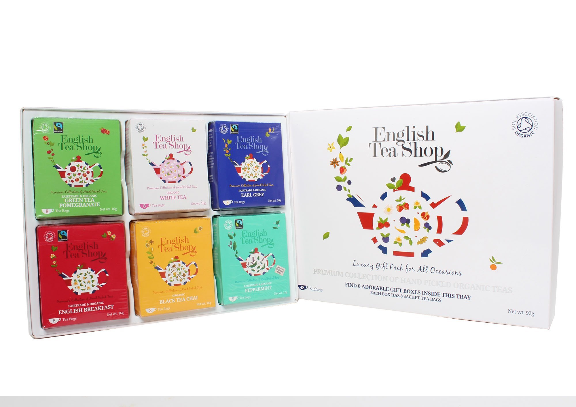This English Tea Shop 48 sachets Gift collection is perfect for tea lovers far and wide, combines 6 different teas: Earl Grey, Peppermint, Green Tea Pomegranate, English Breakfast, Black Tea Chai, White.