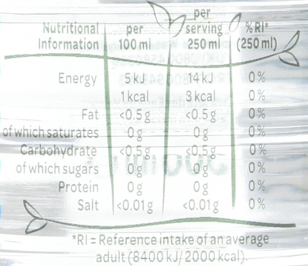The water is unfastened from sugar, colouring or synthetic flavours