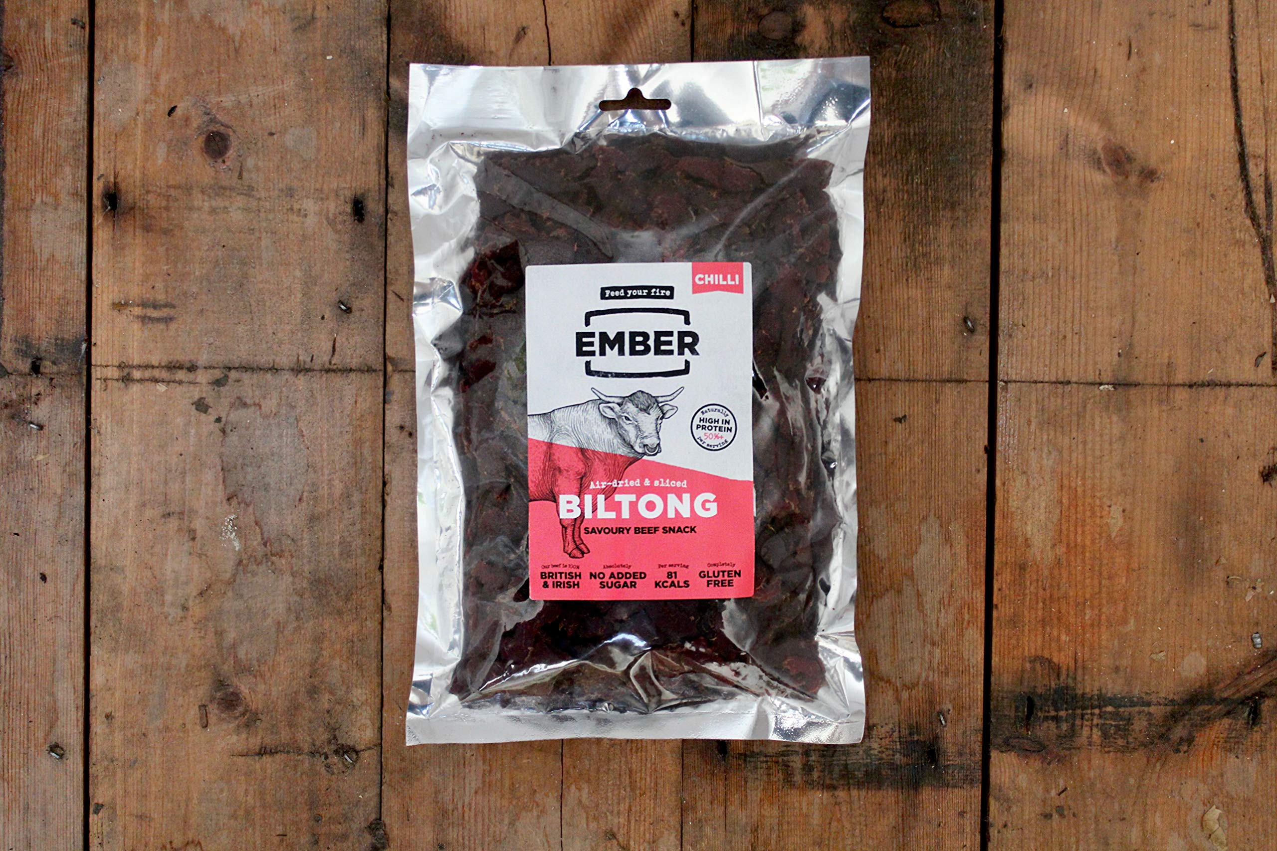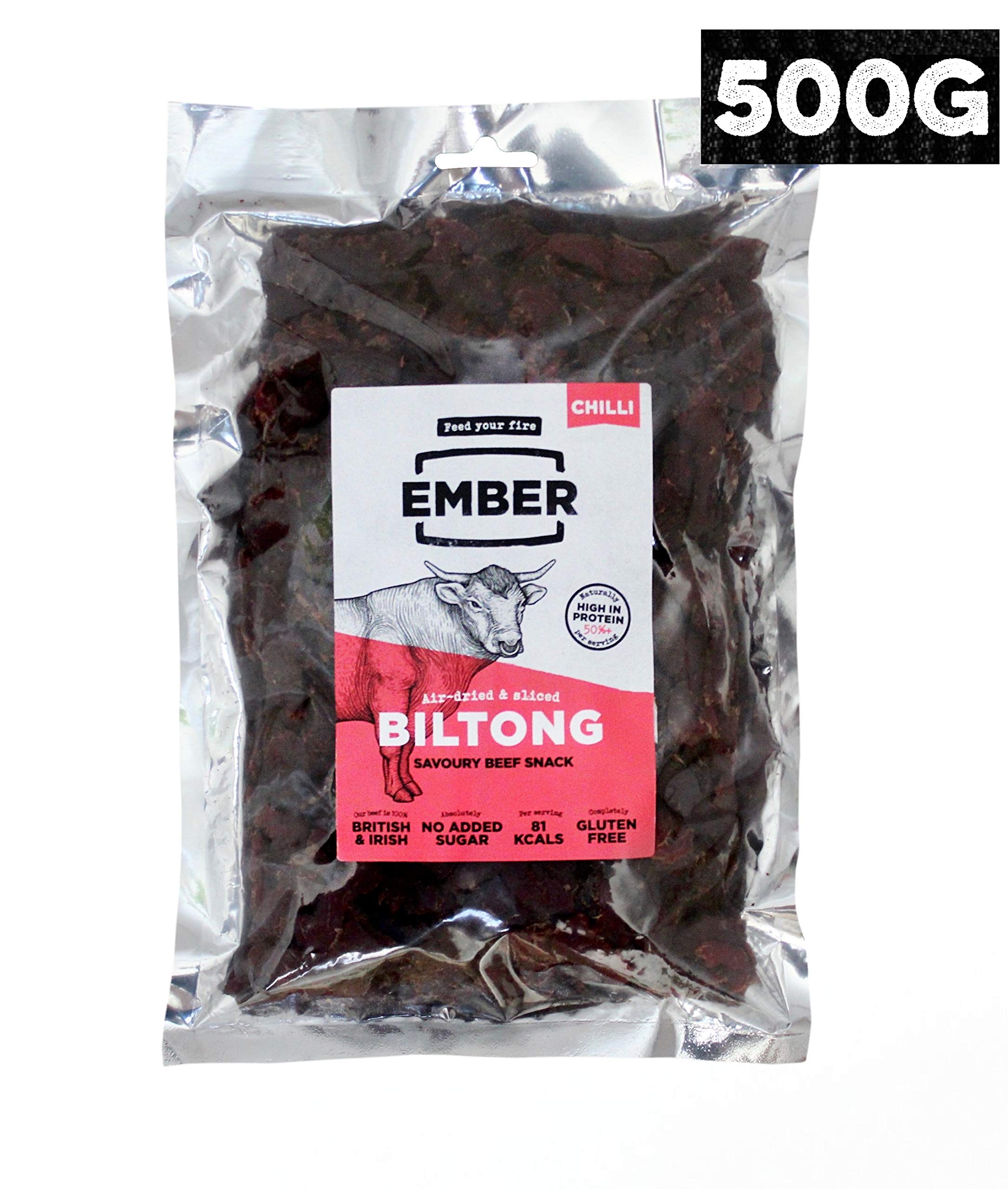 EMBER Biltong Bulk Bag – Beef Jerky – Chilli British and Irish Jerky. High Protein Biltong Snack. (Chilli, 500g)
