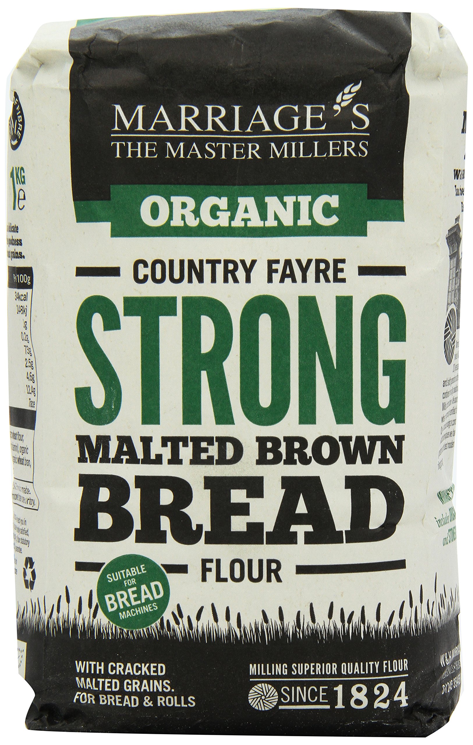 Marriages Organic Country Fayre Strong Malted Brown Bread Flour 1 kg (Pack of 6)