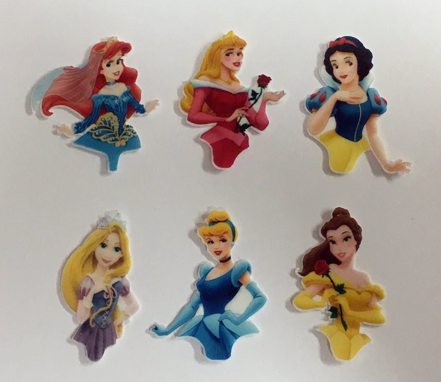 This listing is for 12 Pre Cut Able to Use Suitable for eating Wafer Toppers. 2 of Each and every topper. Belle. Cinderella. Rapunzel. Snow. White. Sleeping Beauty. Ariel. Each