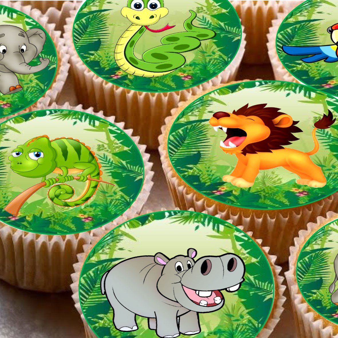 24 Jungle Animals Lion Snake Parrot Tropical Elephant Cake Toppers 4cm On Wafer Rice Paper