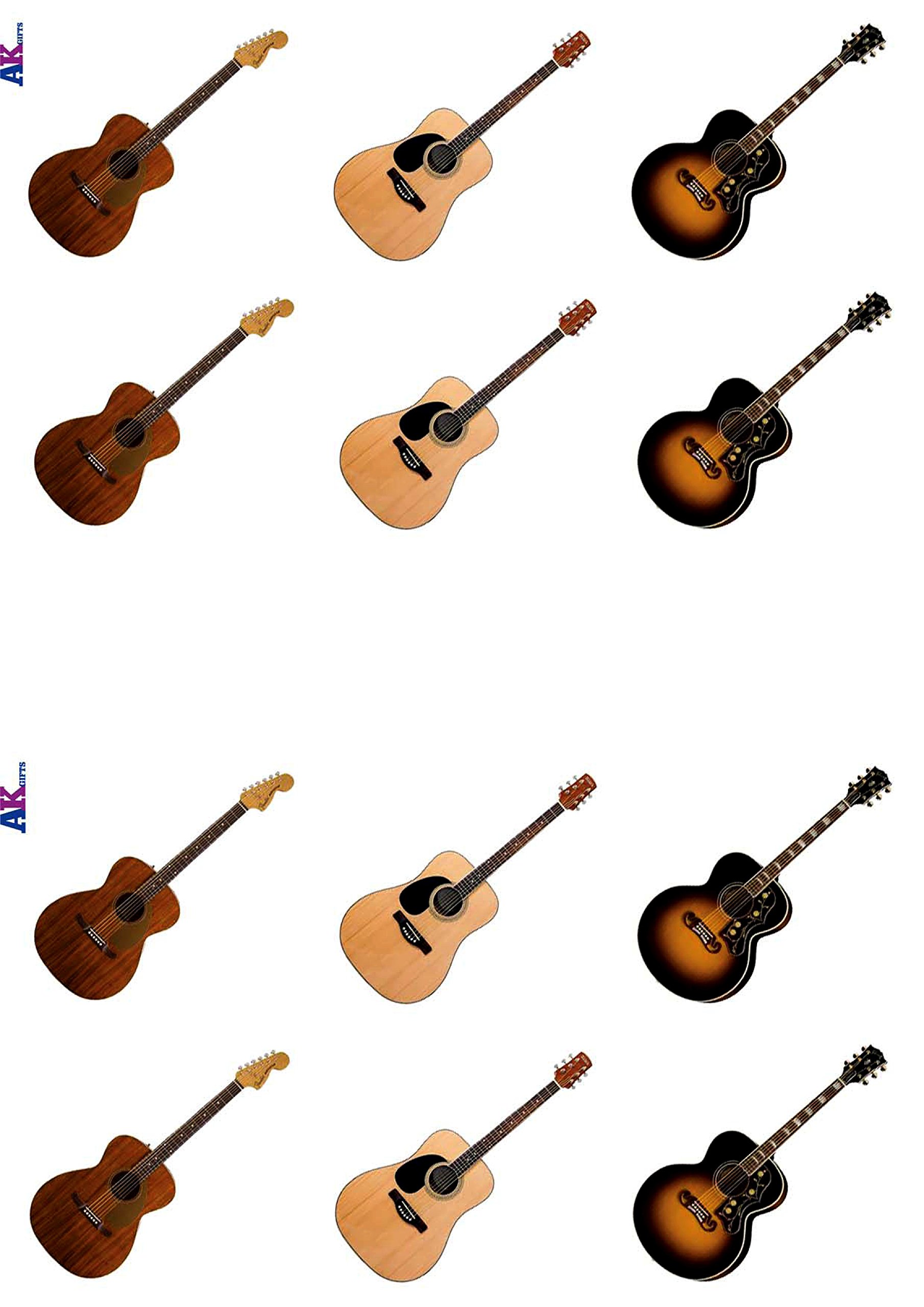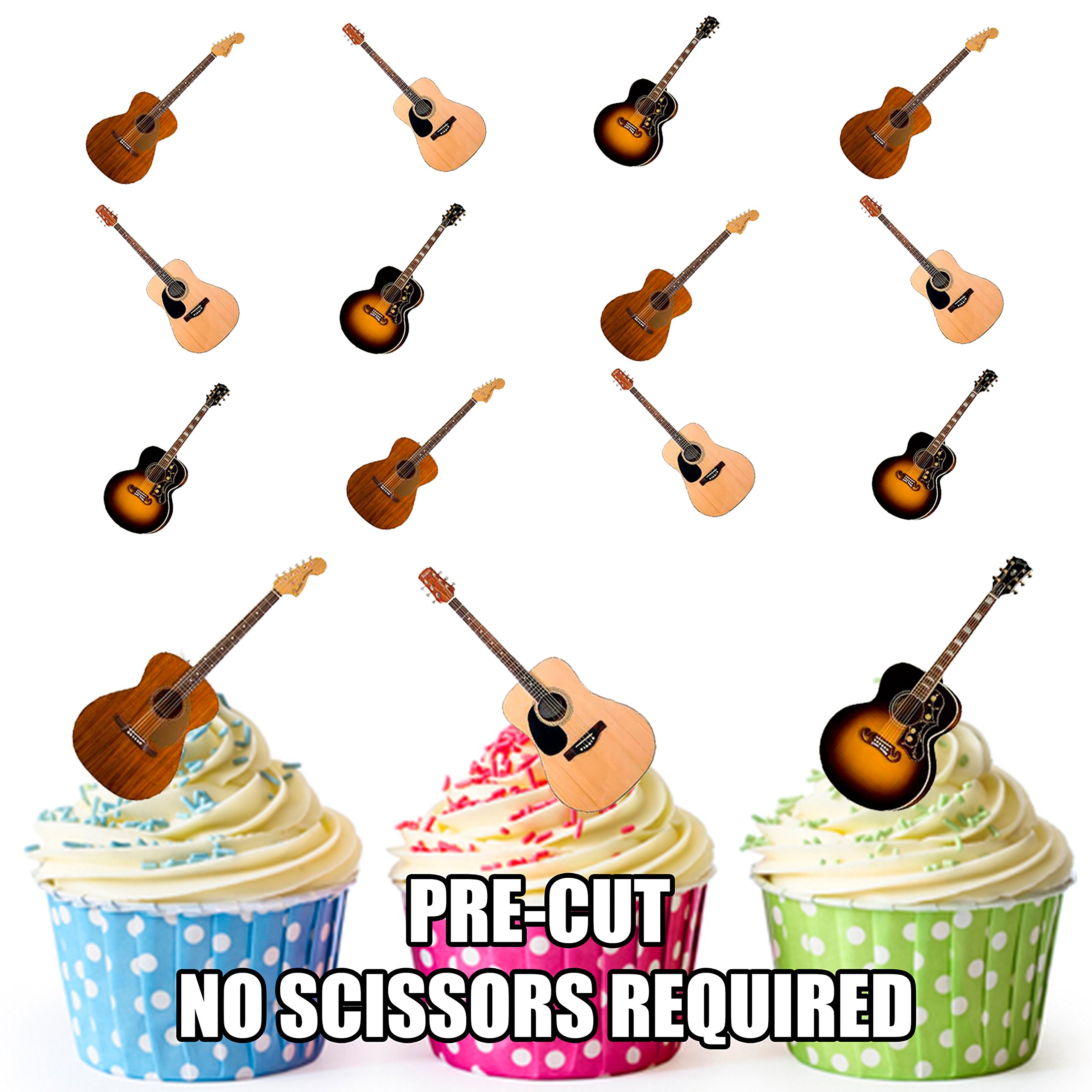 PRE-CUT Acoustic Guitars Cake Decorations – 12 Edible Wafer Cup Cake Toppers